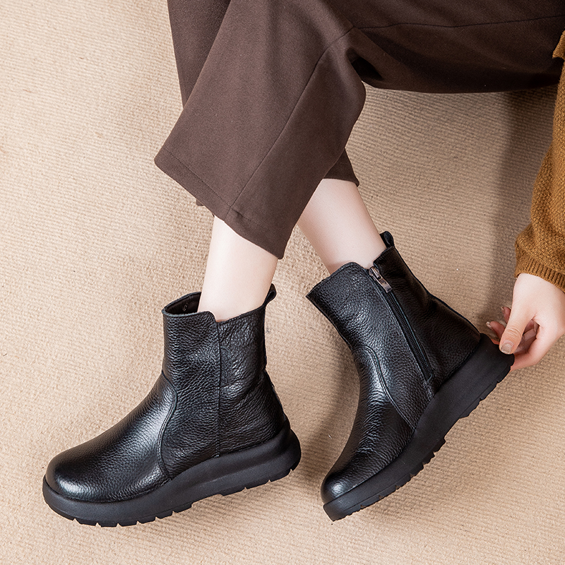 加绒加厚棉鞋女冬季羊毛真皮妈妈鞋保暖平底防滑舒适软底雪地短靴