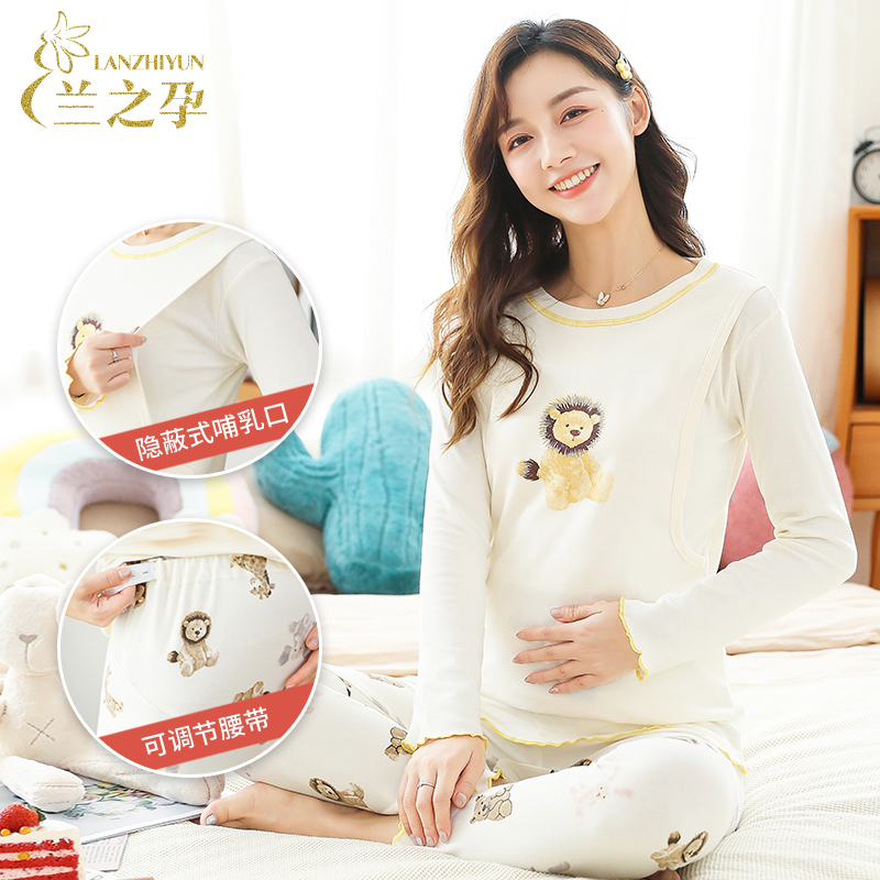 孕妇秋衣秋裤套装纯棉毛衫产后哺乳睡衣月子服怀孕期保暖内衣秋冬