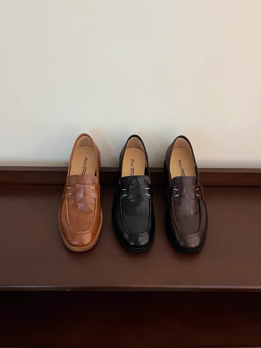 zachpeng圆头复古英伦风小皮鞋女2024年新款真皮一脚蹬乐福单鞋子