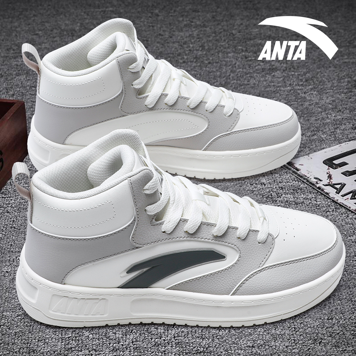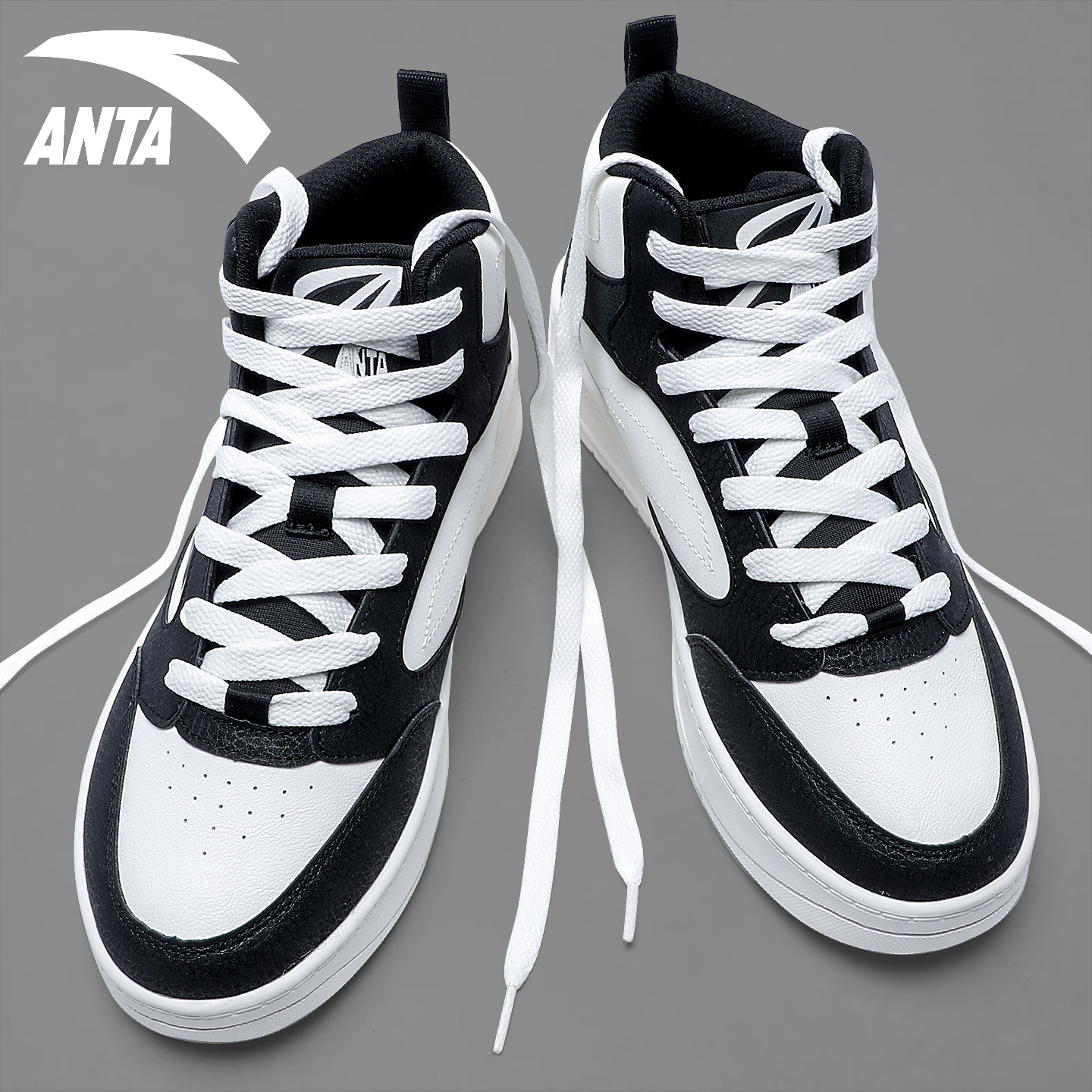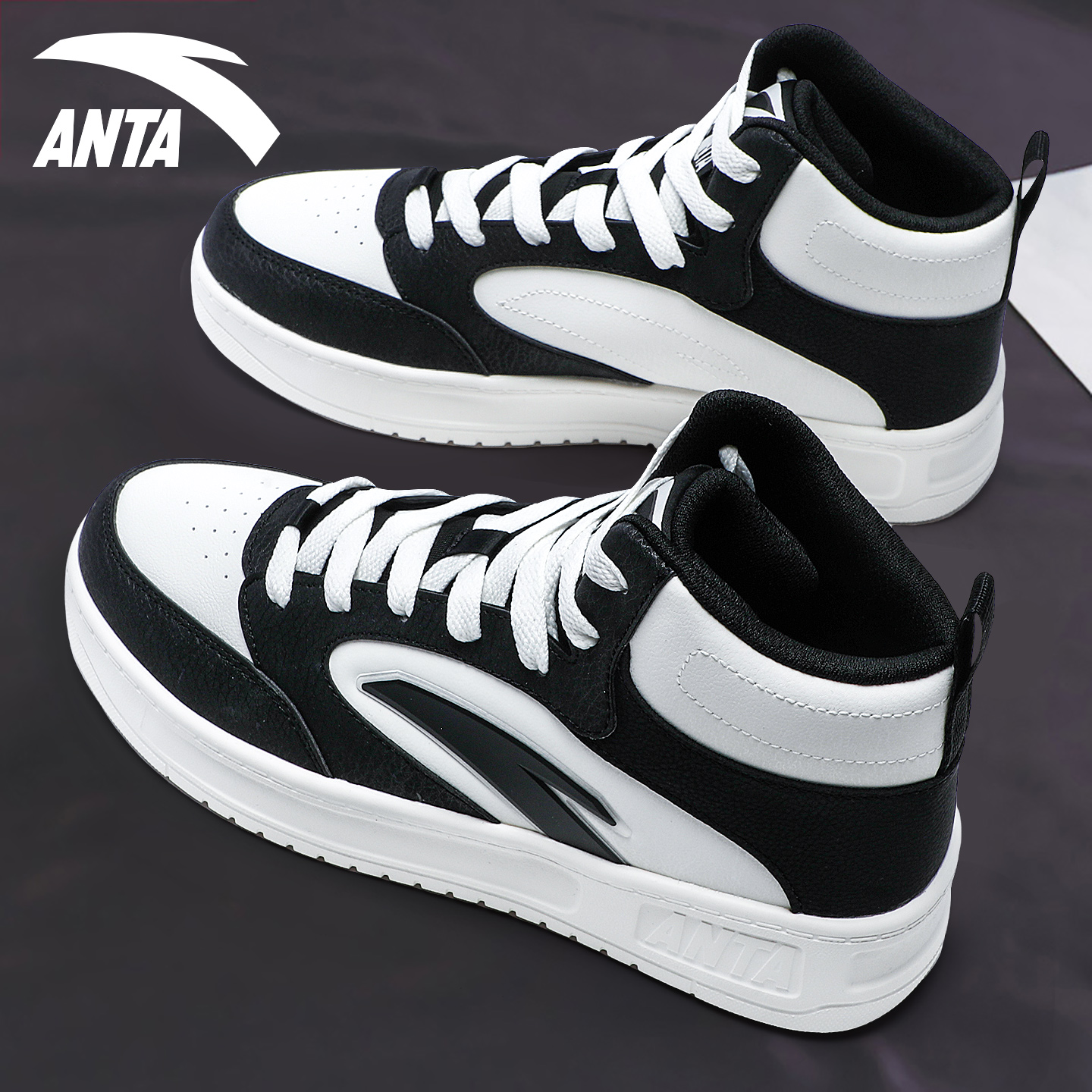 安踏高帮板鞋男厚底潮流黑白熊猫