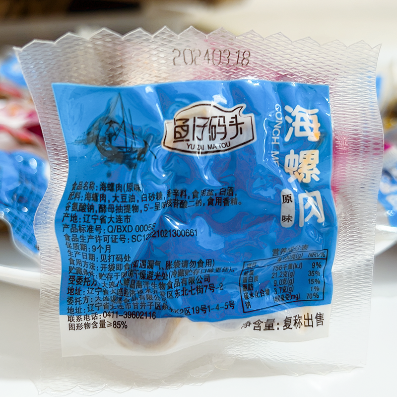 大连特产鱼仔码头海螺肉开袋即食海鲜熟食小包装新鲜麻辣海螺零食