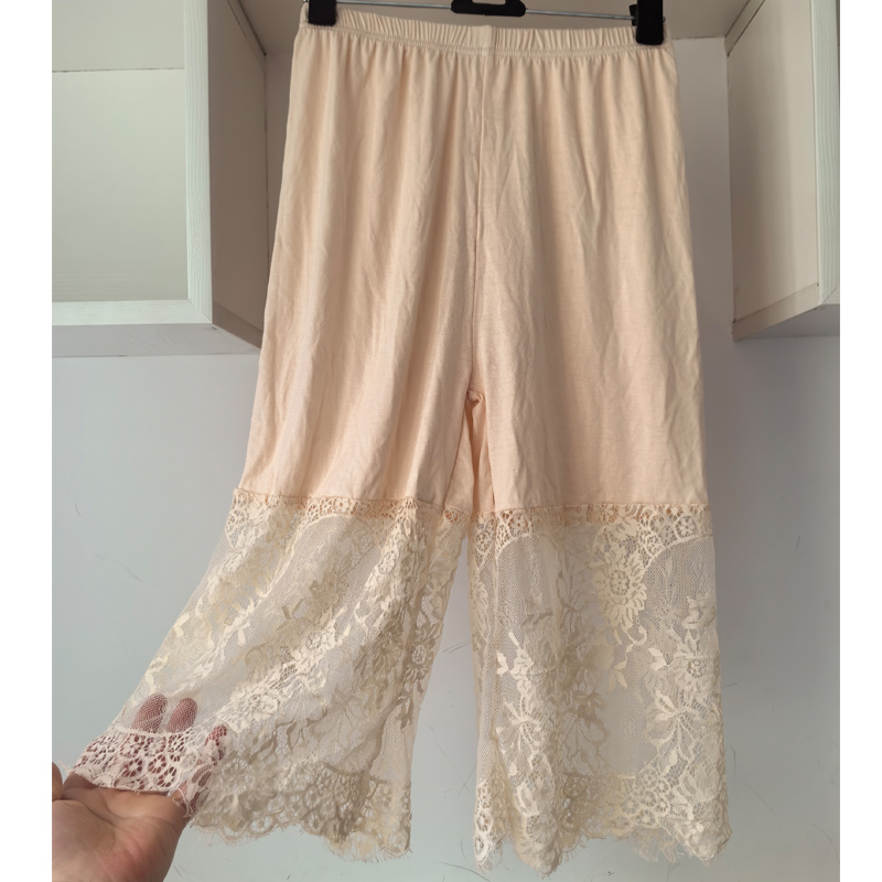 女防走光阔腿裤白色打底裤夏性感薄蕾丝裤新款旗袍汉服马面裙衬裤