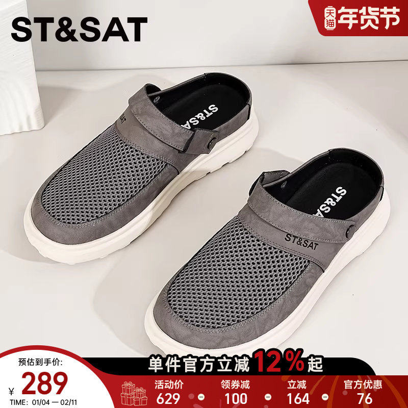星期六男士网面透气洞洞鞋夏季一脚蹬懒人包头凉拖鞋涉水沙滩鞋男