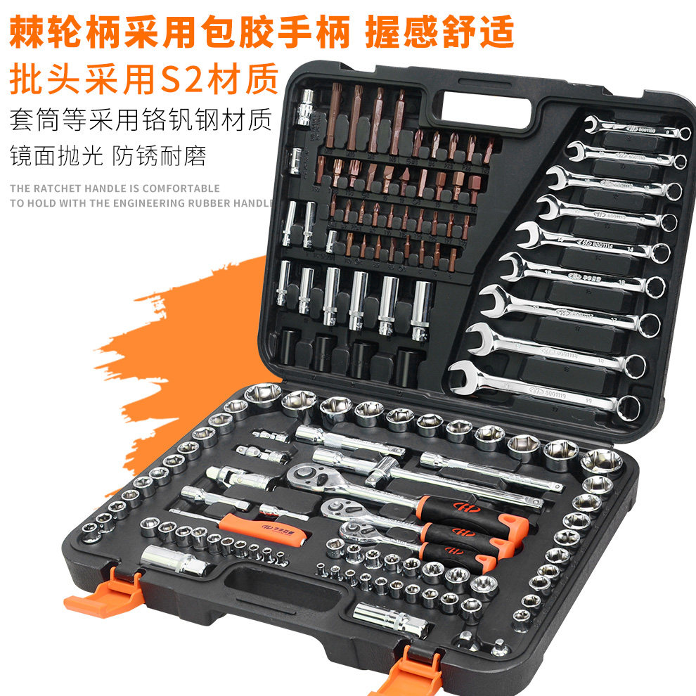 华丰巨箭 汽车套筒组套 汽修扳手维修理工具套装五金工具箱组合