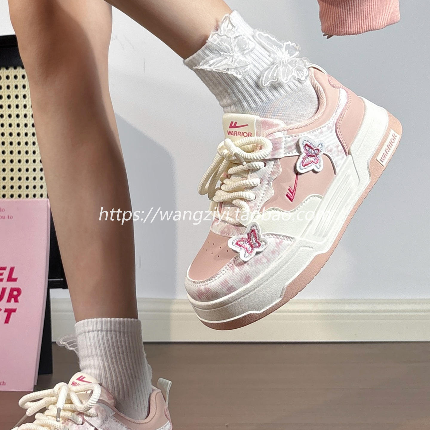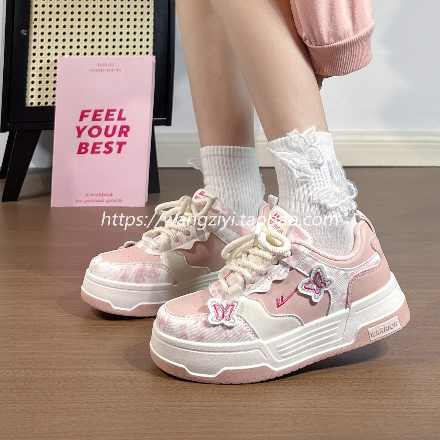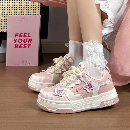 回力粉色蝴蝶小白鞋女2025新款爆款百搭学生运动轻便透气板鞋厚底