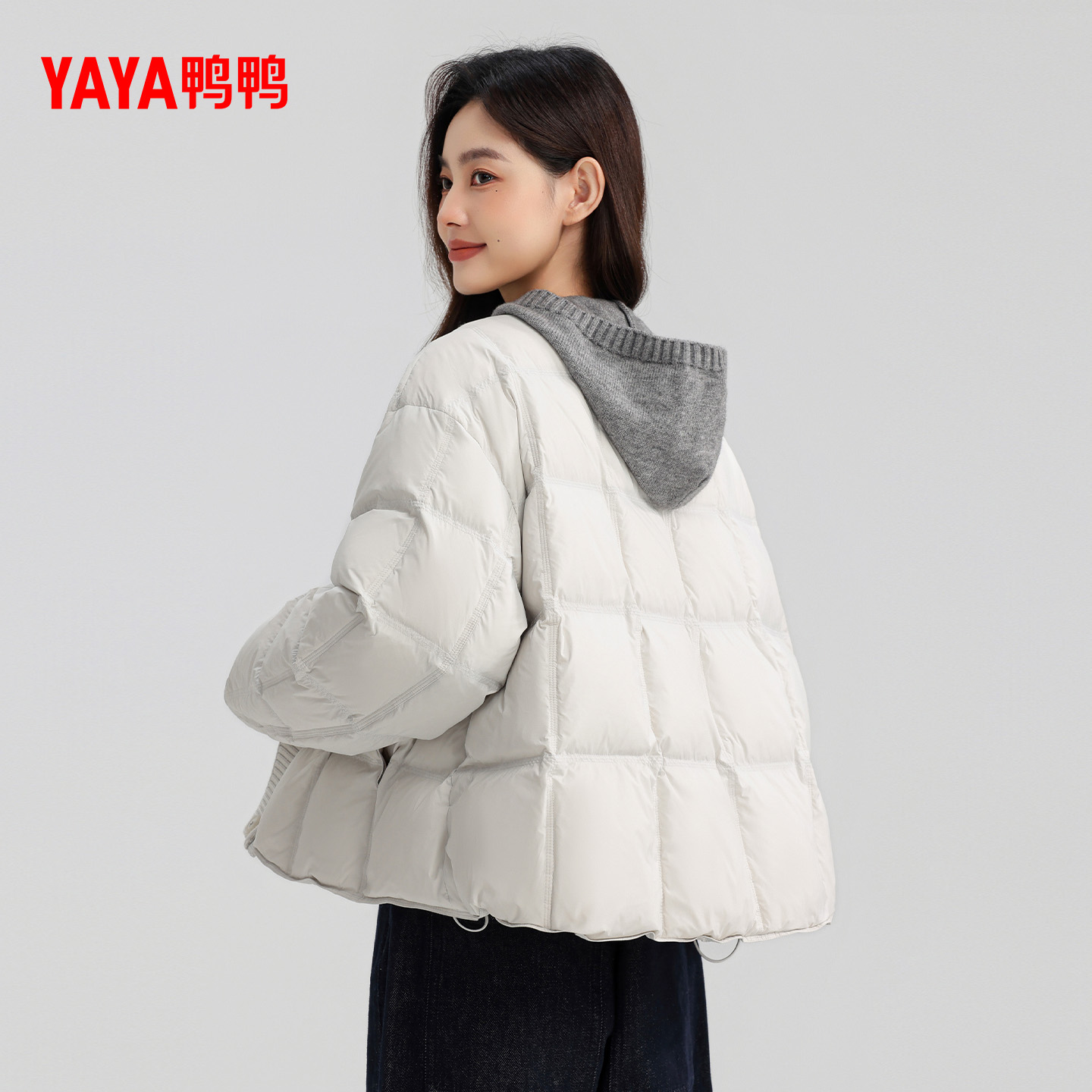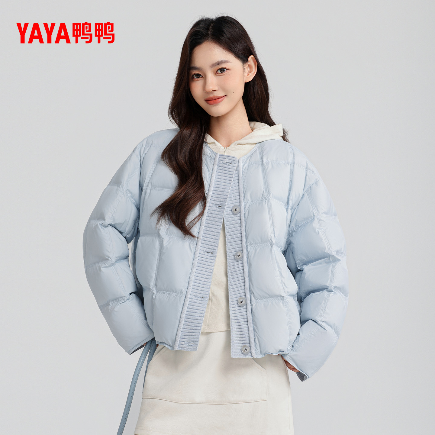 鸭鸭羽绒服女2025冬季新款短款圆领时尚休闲百搭保暖鸭绒厚外套F