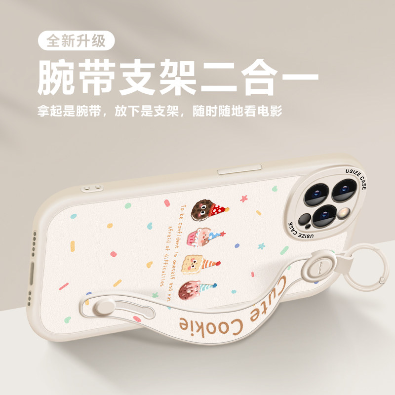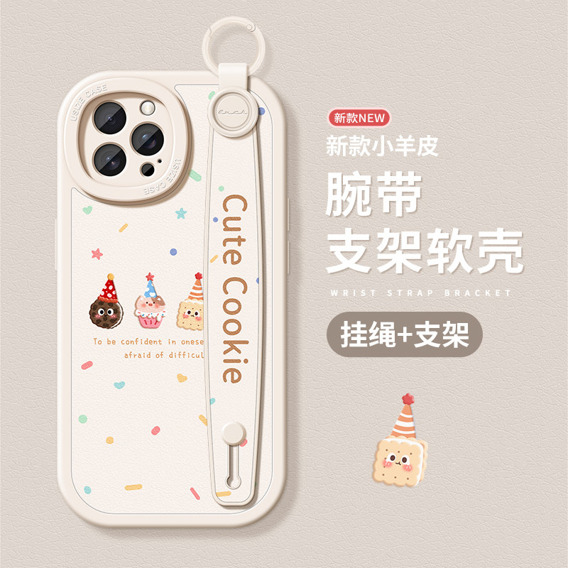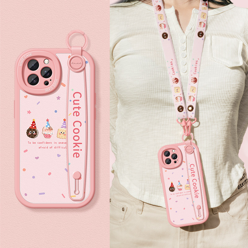可爱饼干适用苹果16Promax手机壳14pro新款女iPhone13全包8p防摔iPhone15腕带挂绳7plus支架6s斜挎挂脖xr背带