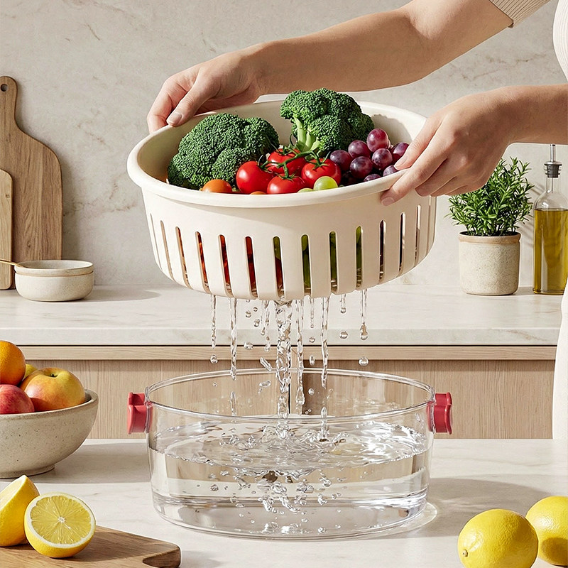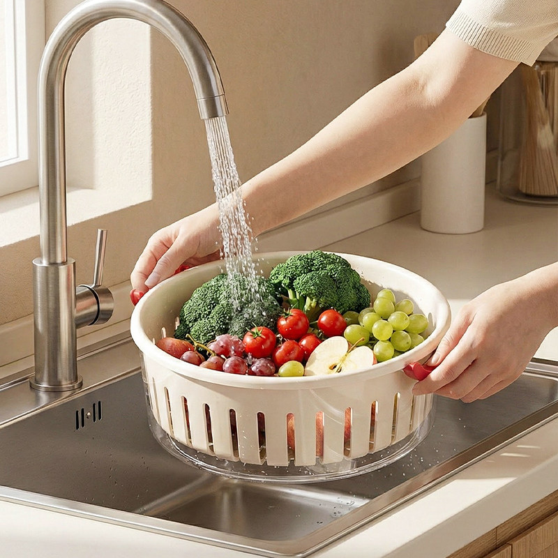 洗菜盆沥水篮新款果盘客厅茶几家用厨房双层滤水水果篮果盘高颜值
