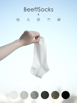 BEEFF男女情侣 夏季麻棉短袜船袜 亚麻苎麻 透气薄款无骨