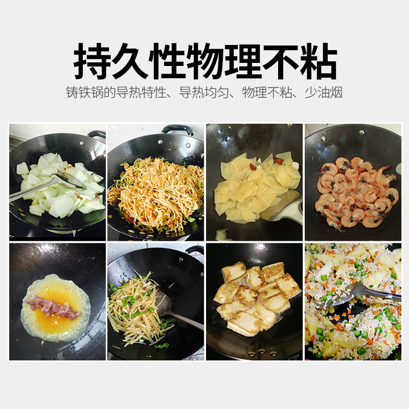 悦町郏县生铁锅家用无涂层圆底炒菜锅老式铸铁尖底燃气电磁炉炒锅