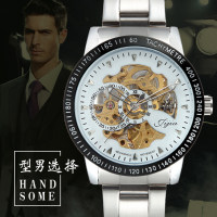 正品真皮带钢带大表盘全自动机械表防水夜光双面镂空男士手表男表