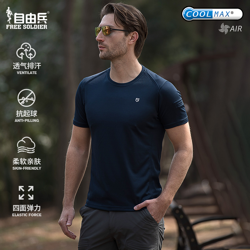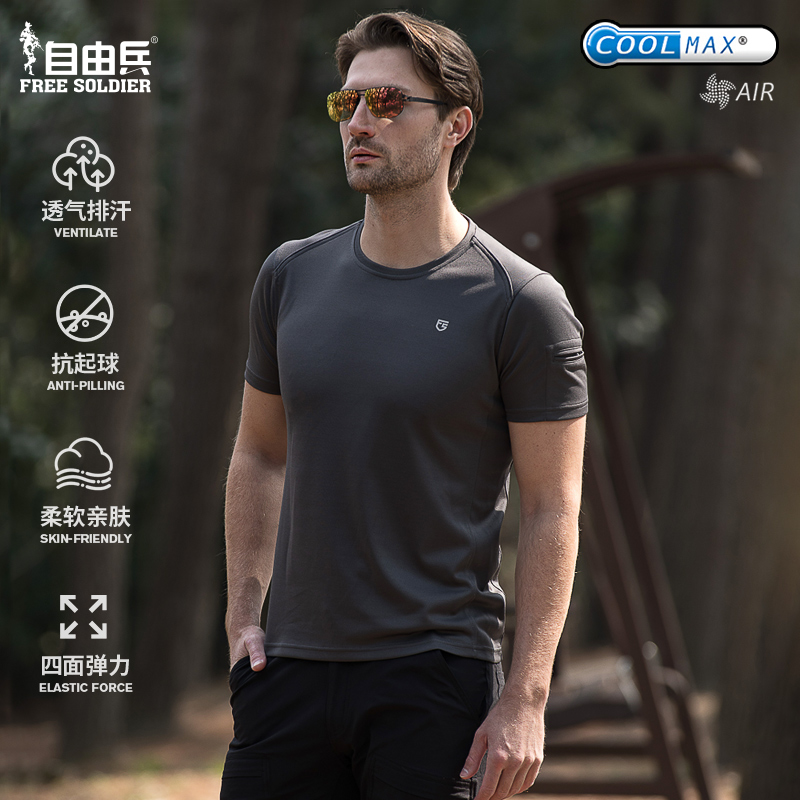 自由兵冰翼凉感COOLMAXAIR速干衣男打底户外透气运动战术短袖T恤