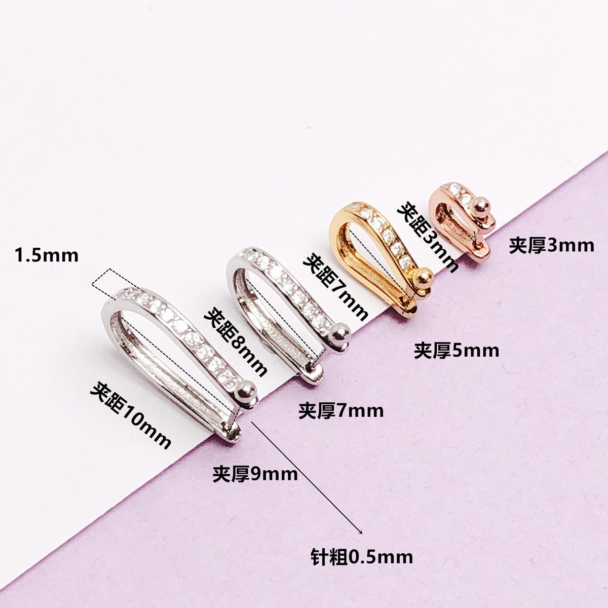 s925纯银镀18k金U型扣吊坠扣玉坠配件多用扣活扣卡扣玉扣翡翠扣头