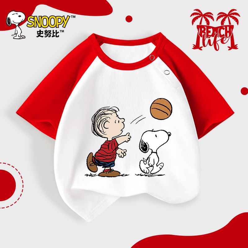 史努比男童T恤2025夏季新款宝宝插肩袖纯棉短袖婴儿帅气半袖印花