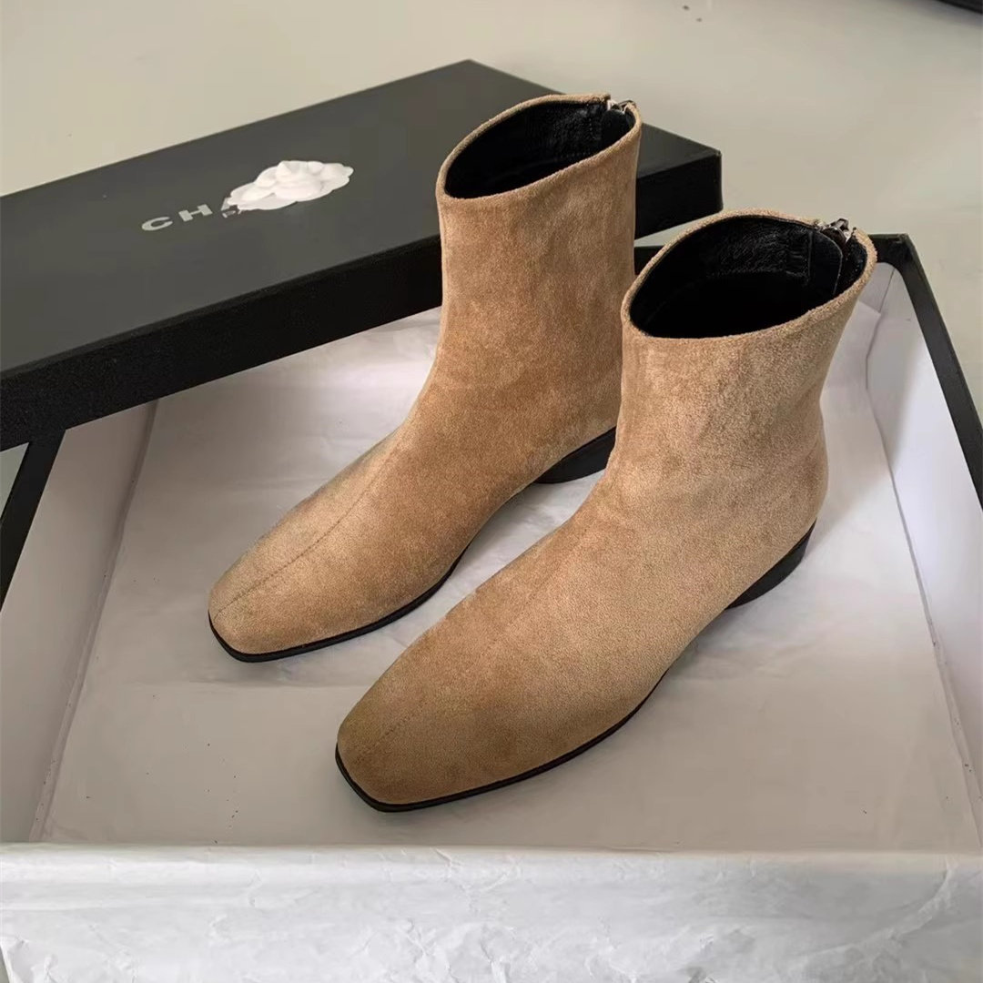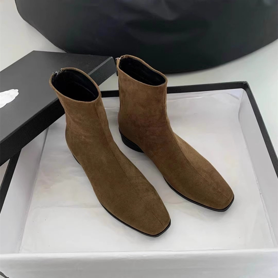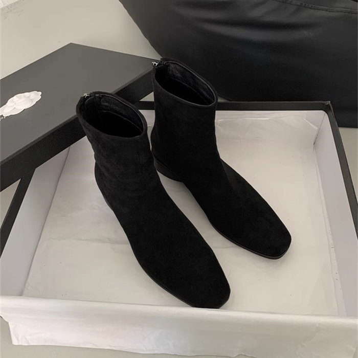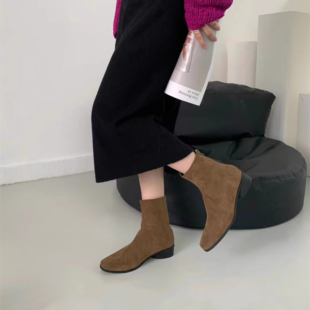 小短靴女粗跟瘦瘦靴绒面后拉链女