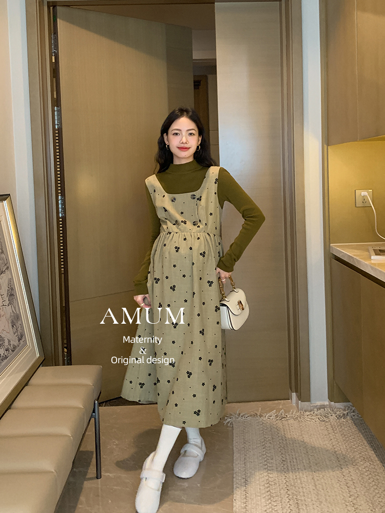 amum孕妇装打底衫碎花背心裙