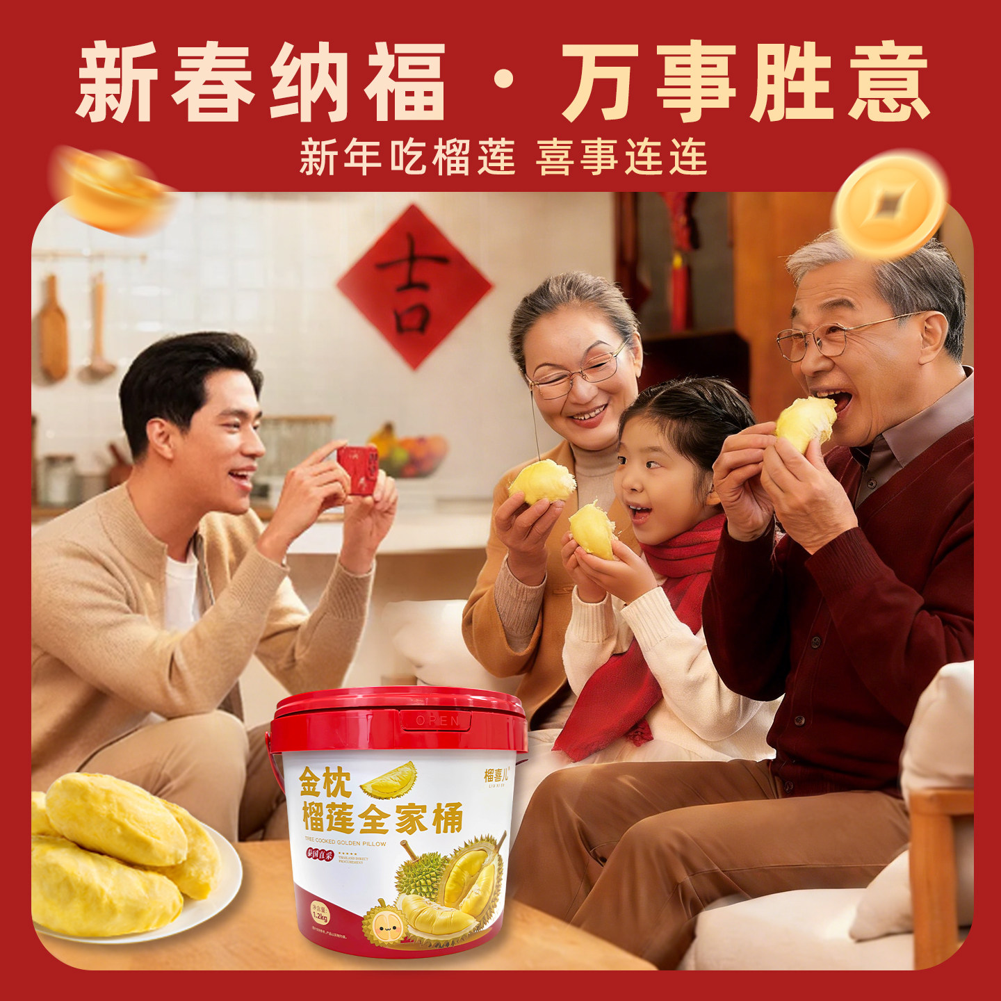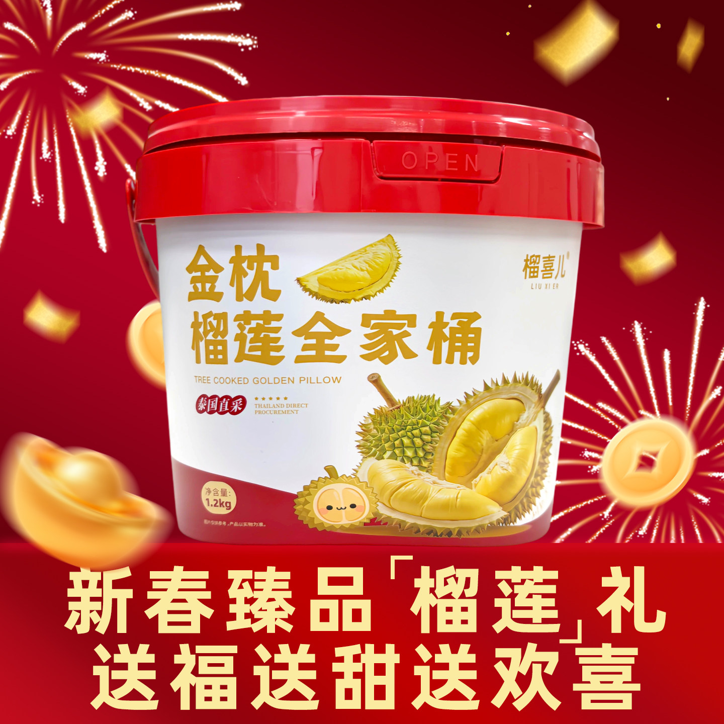 榴喜儿榴莲泰国金枕榴莲肉新鲜树熟榴莲液氮锁鲜顺丰包邮1.2kg/桶