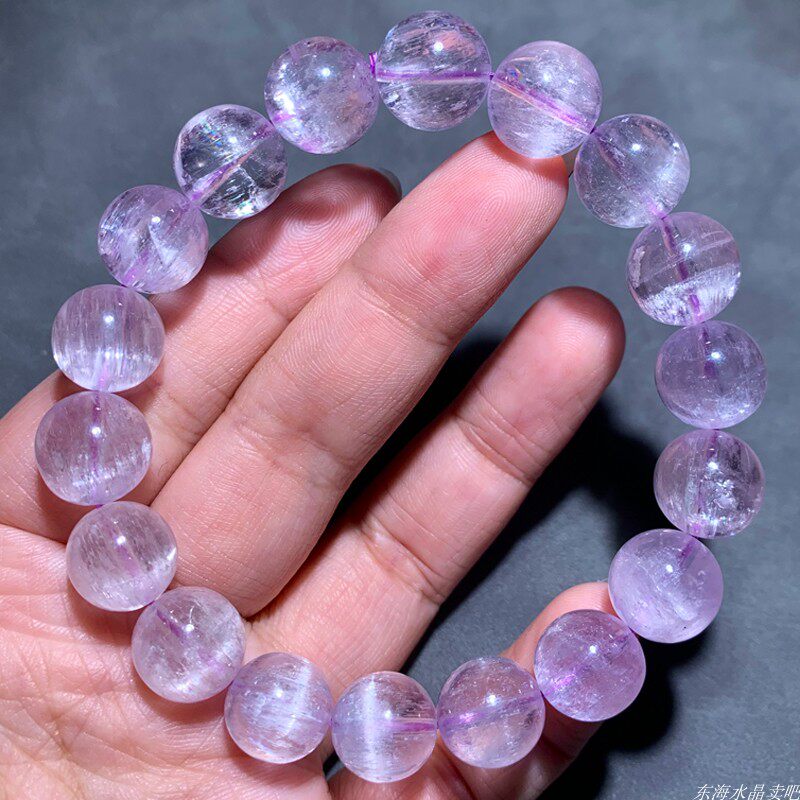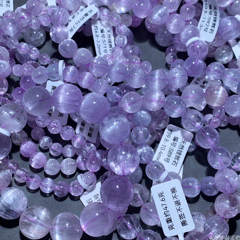 天然老矿猫眼拉丝紫锂辉手串手链紫色宝石薰衣草紫水晶男女民族风
