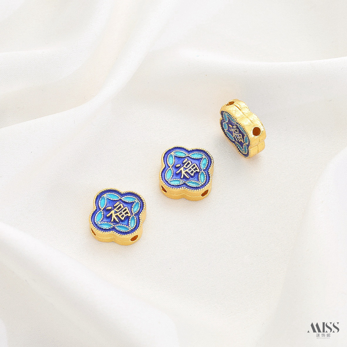 景泰蓝纯手工滴油烧蓝18K保色福字祥云四叶草莲花隔珠diy饰品配件