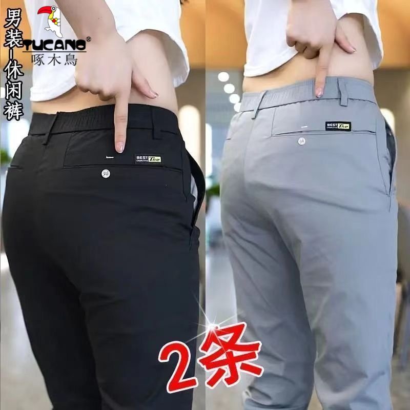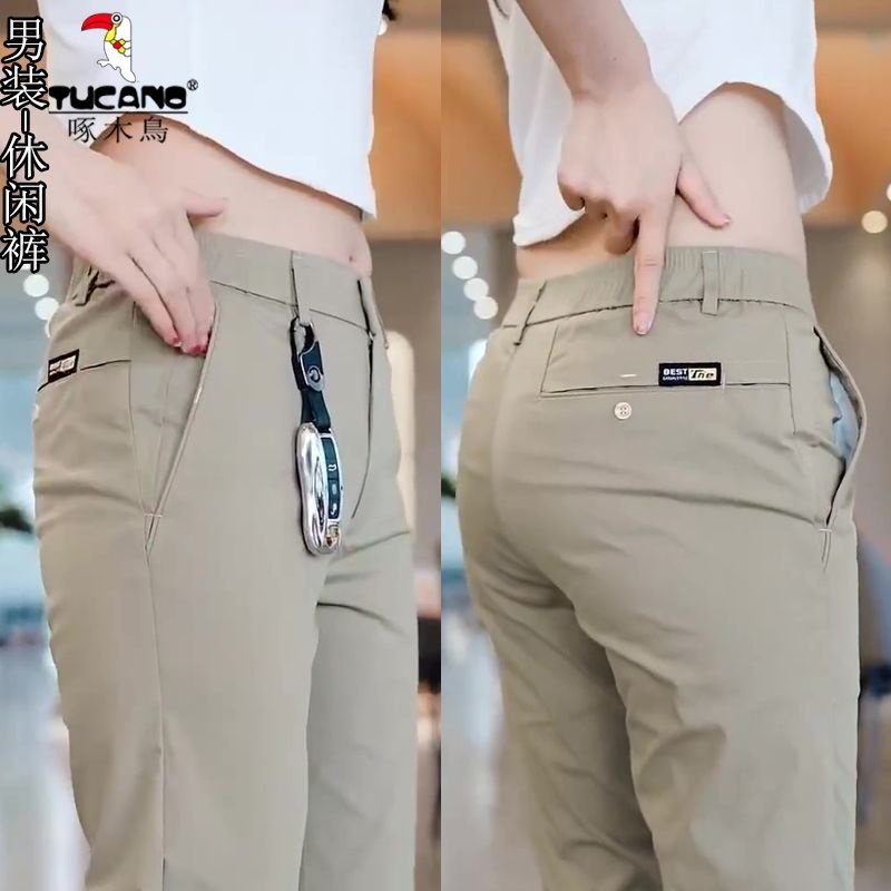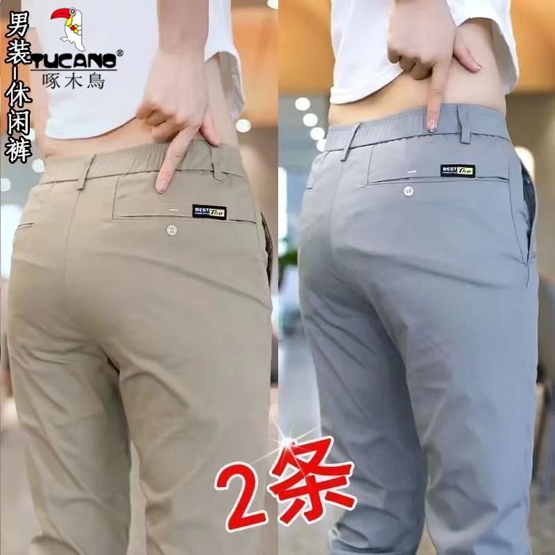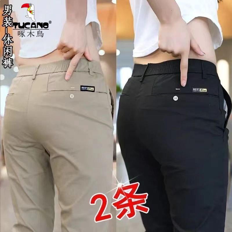 啄木鸟男士休闲裤高端商务夏季直筒宽松男裤2025春夏新款弹力长裤