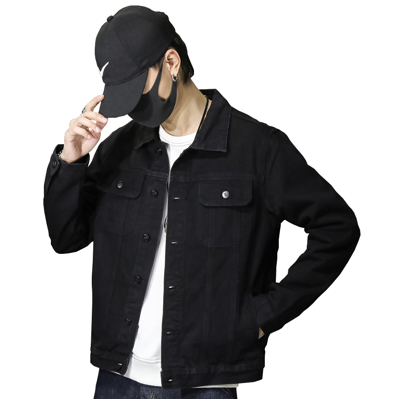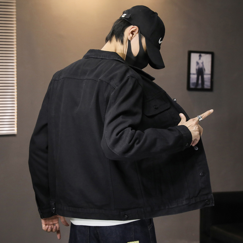 秋季黑色男士牛仔外套修身美式工装秋冬款帅气休闲夹克男复古潮流