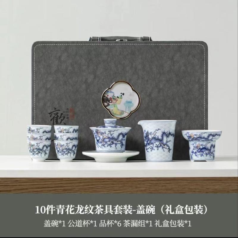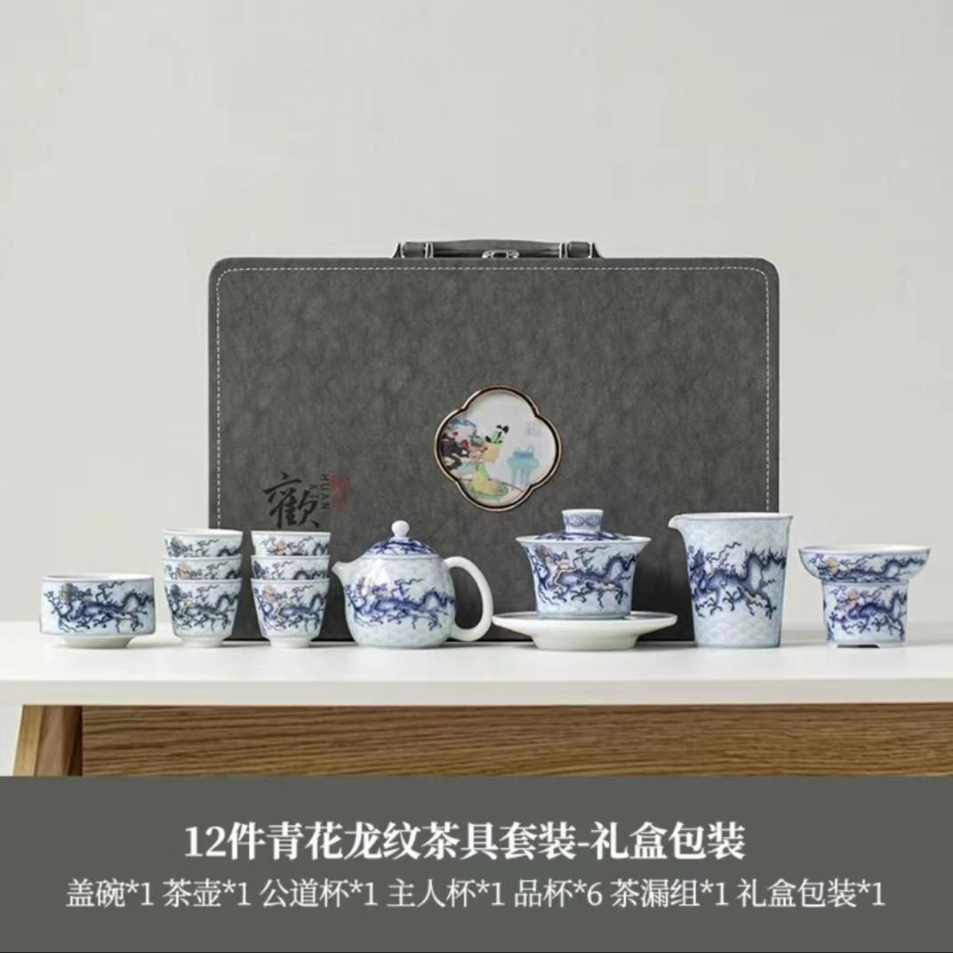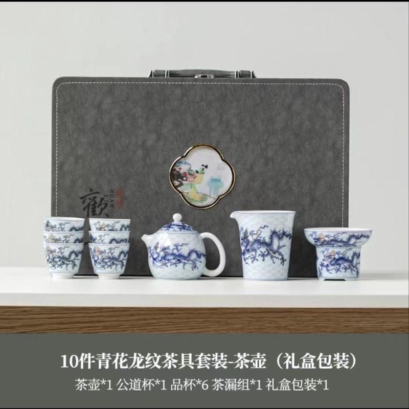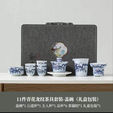 仿古高档龙纹功夫茶具套装青花轻奢整套茶杯家用办公室泡茶器