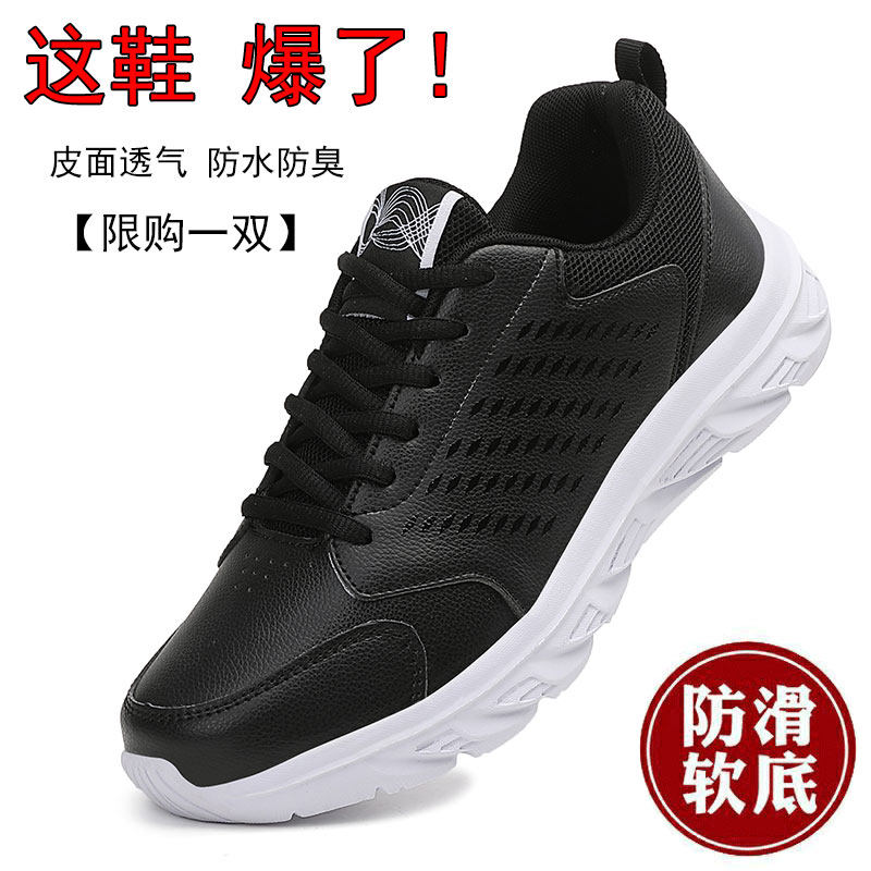 清仓断码东方 骆驼男鞋皮面防滑防水黑色鞋子男款软底耐磨爸爸鞋