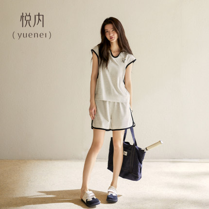 悦内带胸垫睡衣女款夏季夏天纯棉无袖背心短裤家居服时尚休闲运动