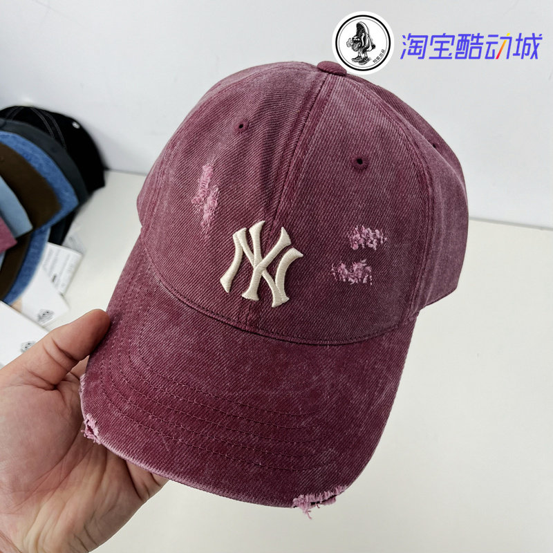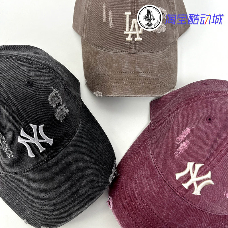 韩国MLB新款复古水洗做旧破洞棒球帽刺绣可调节男女休闲鸭舌帽