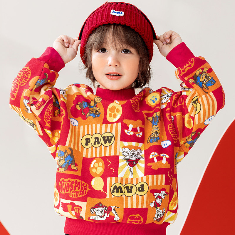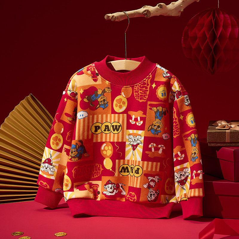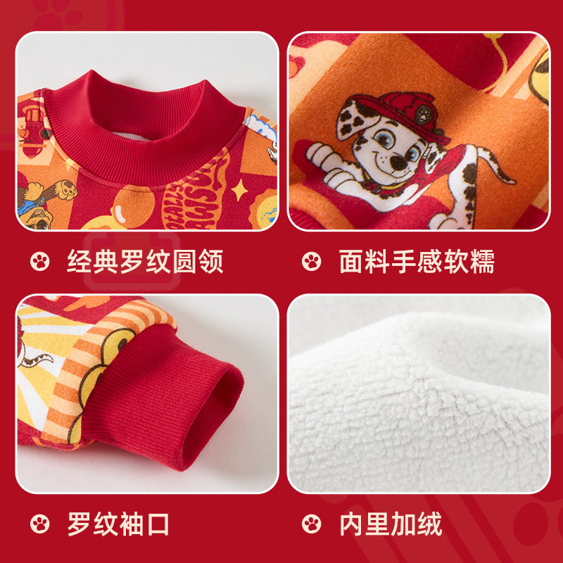 新年服汪汪队男童加绒卫衣套装秋冬款2025新冬装儿童红色卫衣加厚