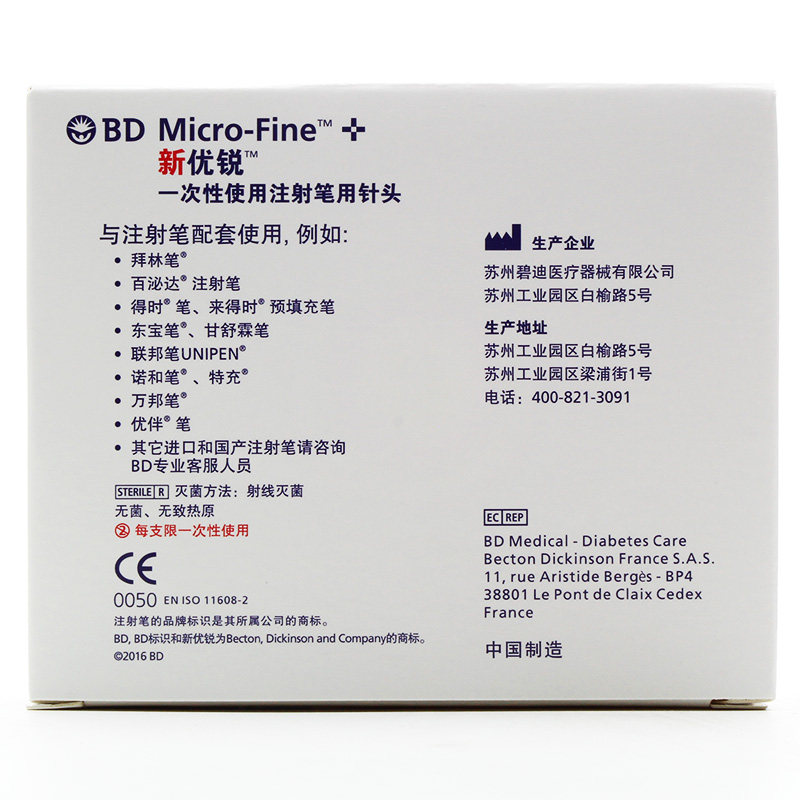 BD新优锐胰岛素针头0.23*4mm一次性注射笔适用糖尿病多笔98支装