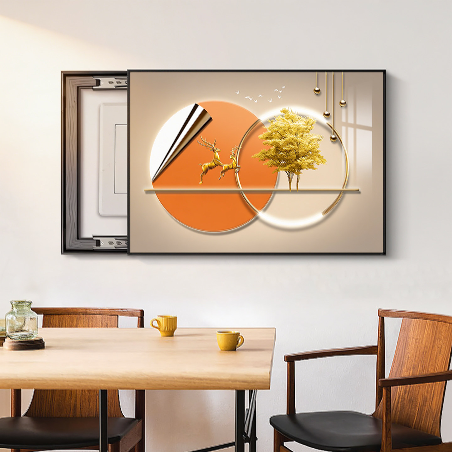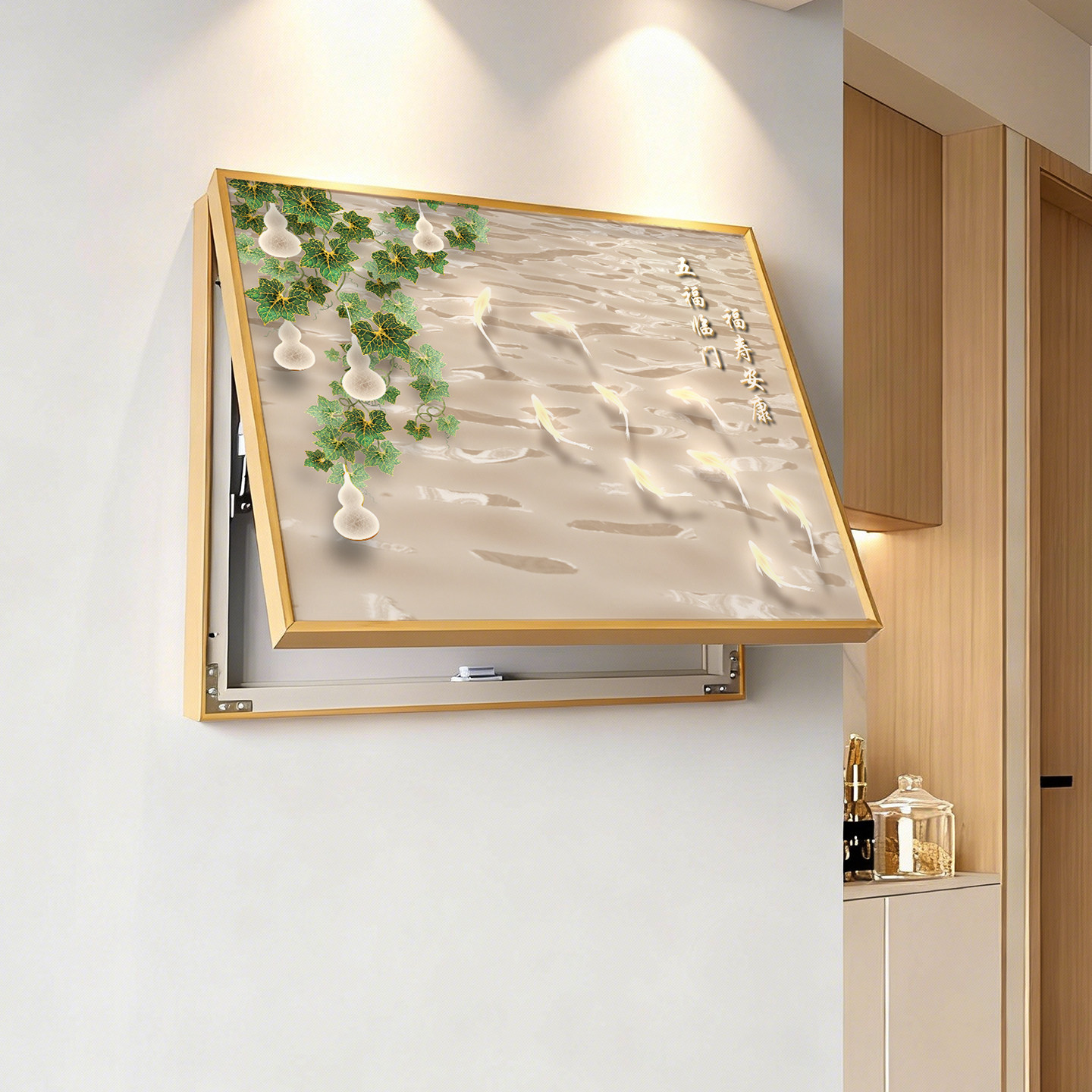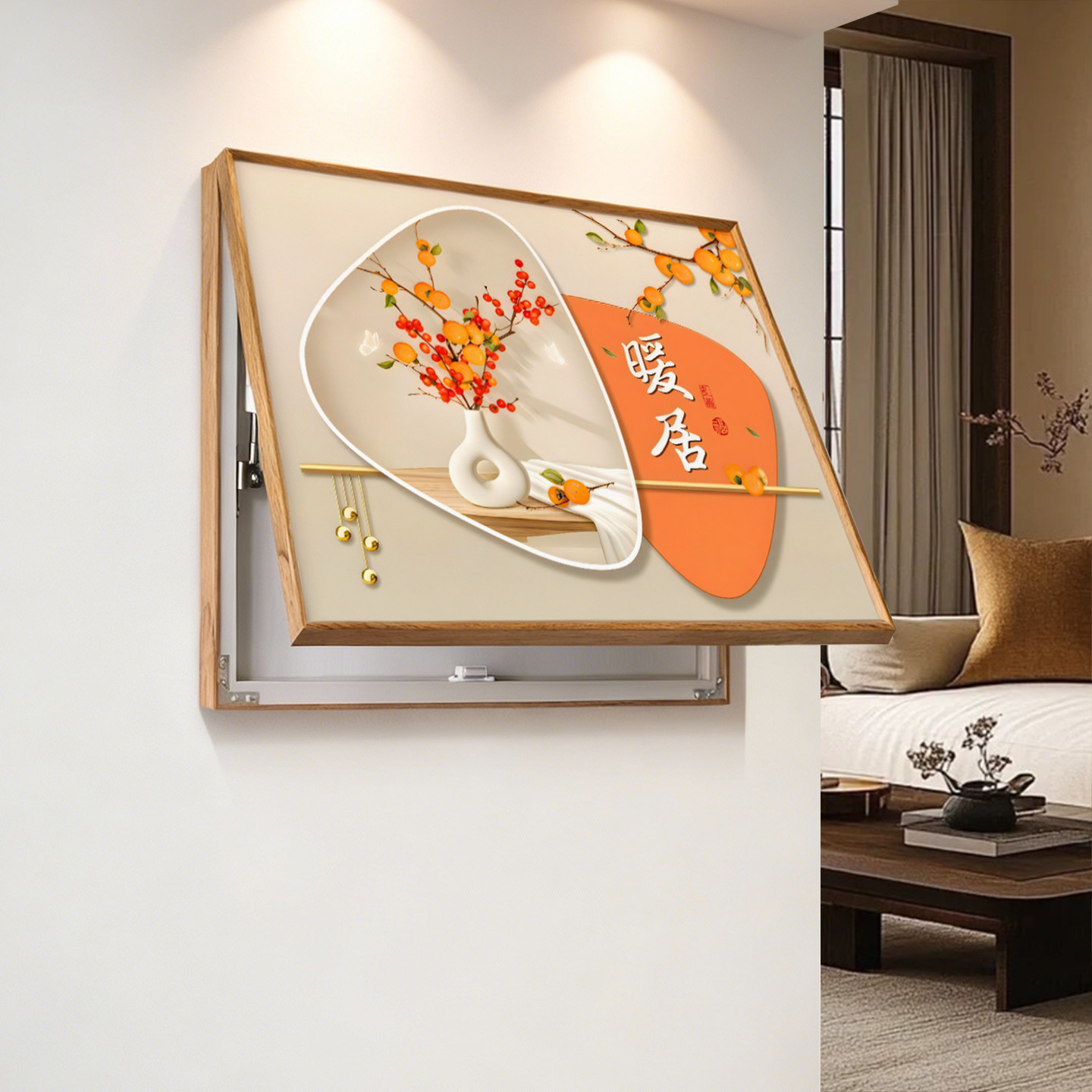 柿柿如意电表箱装饰画新中式免打孔餐厅遮挡电闸箱电源开关盒挂画