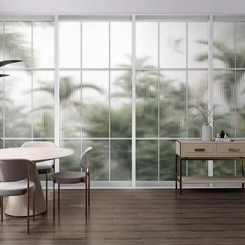 3D立体窗外玻璃假窗户植物墙纸风景画落地延伸空间虚化背景布壁纸
