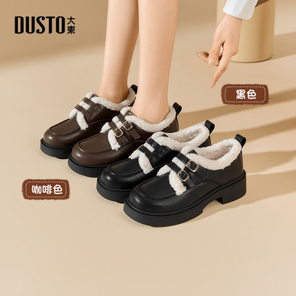 大东乐福鞋女鞋2025冬季新款时尚休闲粗跟套脚中跟圆头简约0237