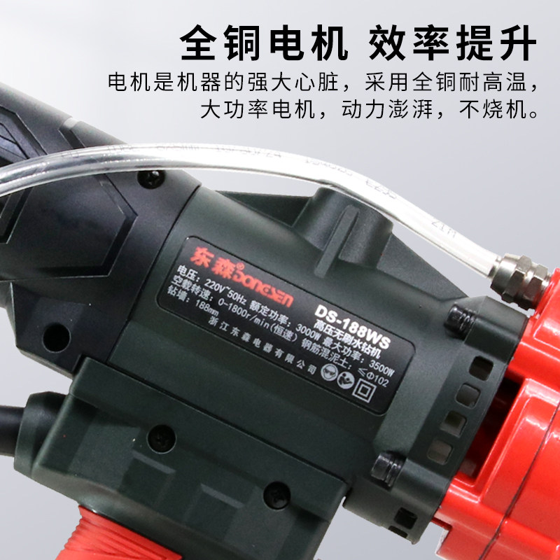 东森新款无刷水钻机高压双离合无水封188恒定转速轻便水钻打孔机
