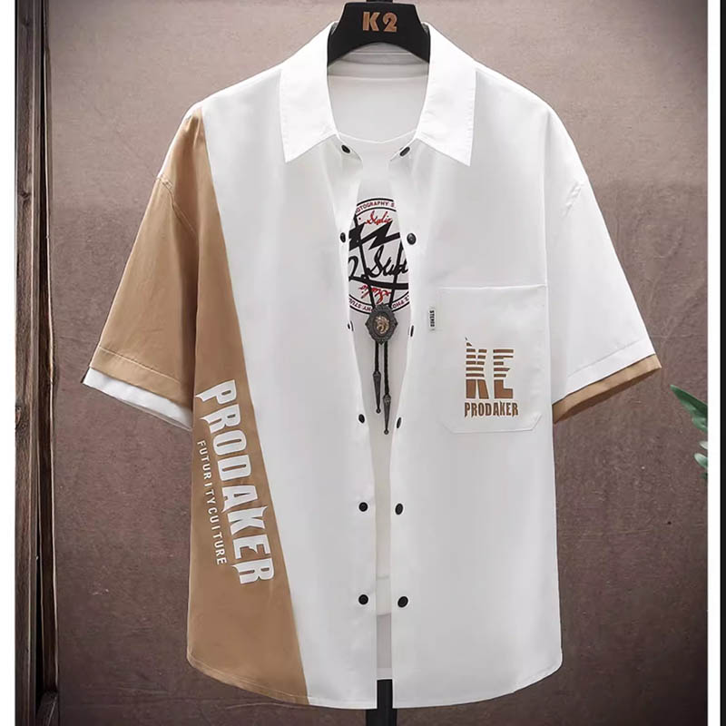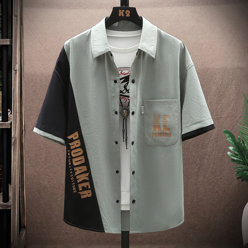 工装短袖衬衫男士夏季薄款宽松肥佬装半袖衬衣学生帅气加大码外套