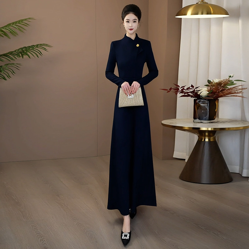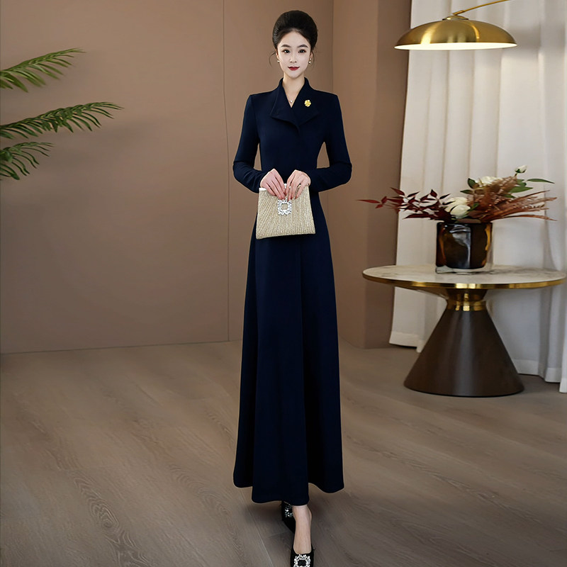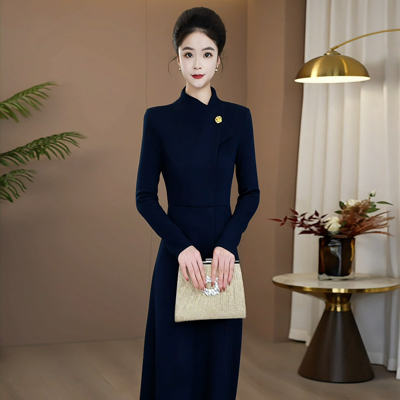 秋冬连衣裙长袖加厚2025新款高端奢华气质显瘦连身裙女长裙1083
