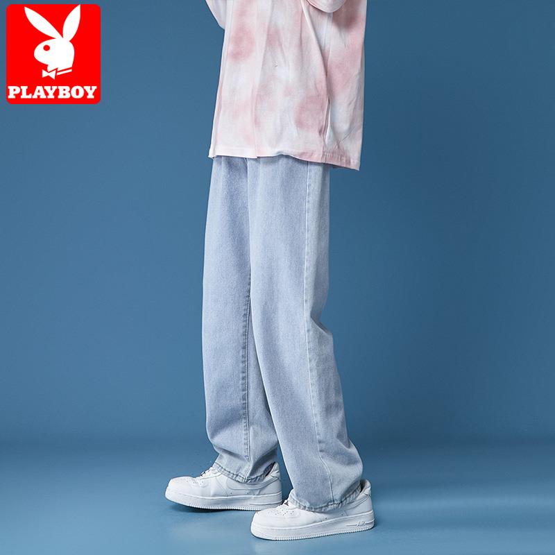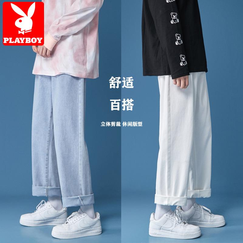 花花公子牛仔裤男夏季薄款学生直筒宽松黑色阔腿休闲长裤子春秋季