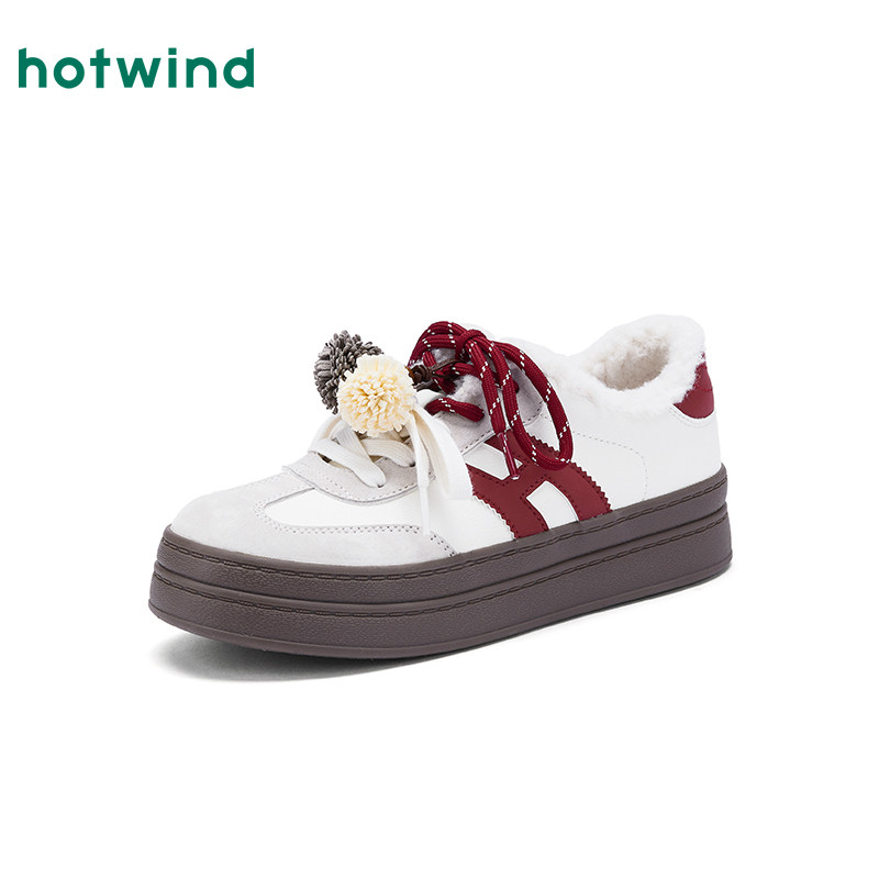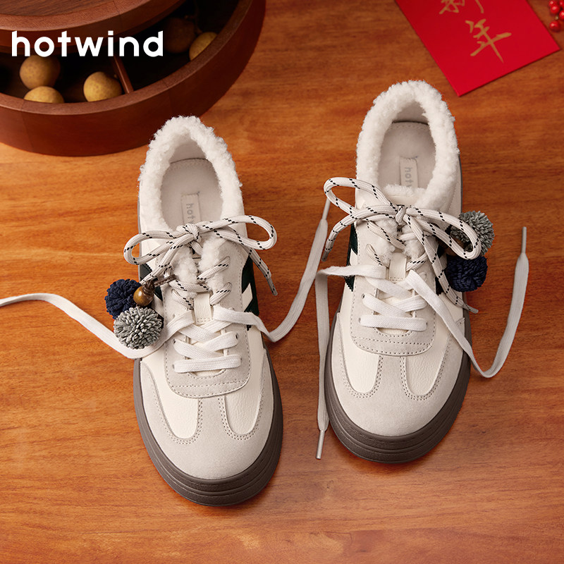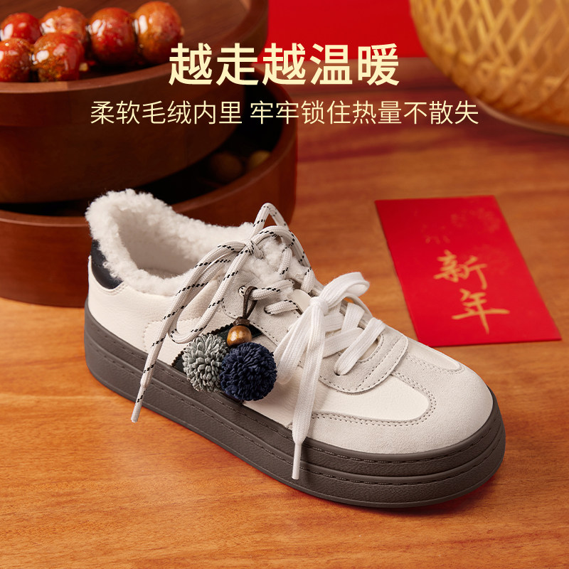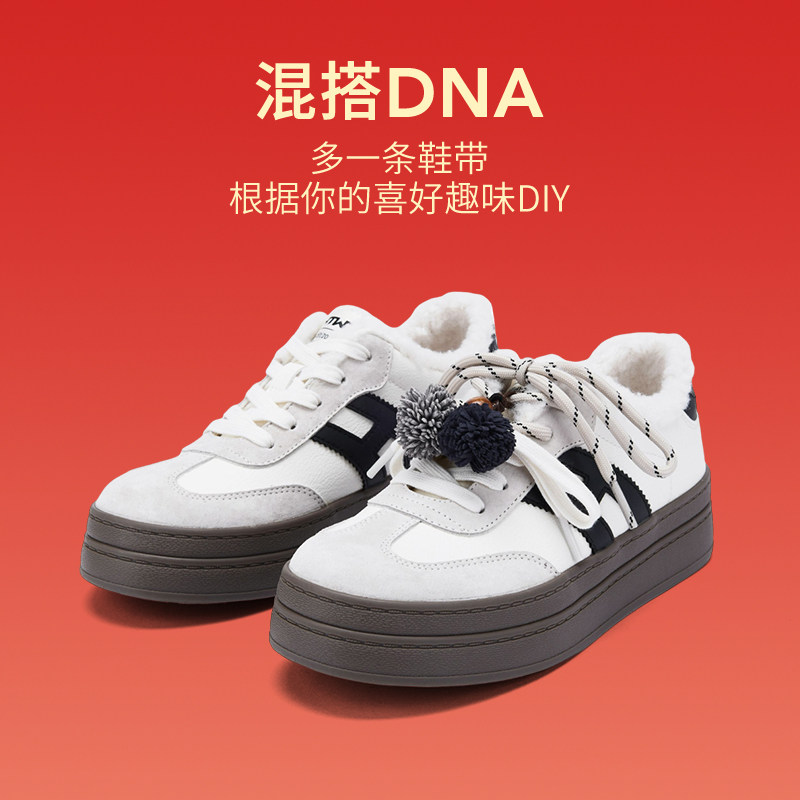 热风厚底德训鞋女2025年冬季新款保暖加绒小白鞋百搭休闲鞋女鞋子