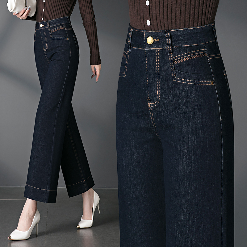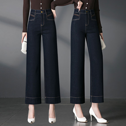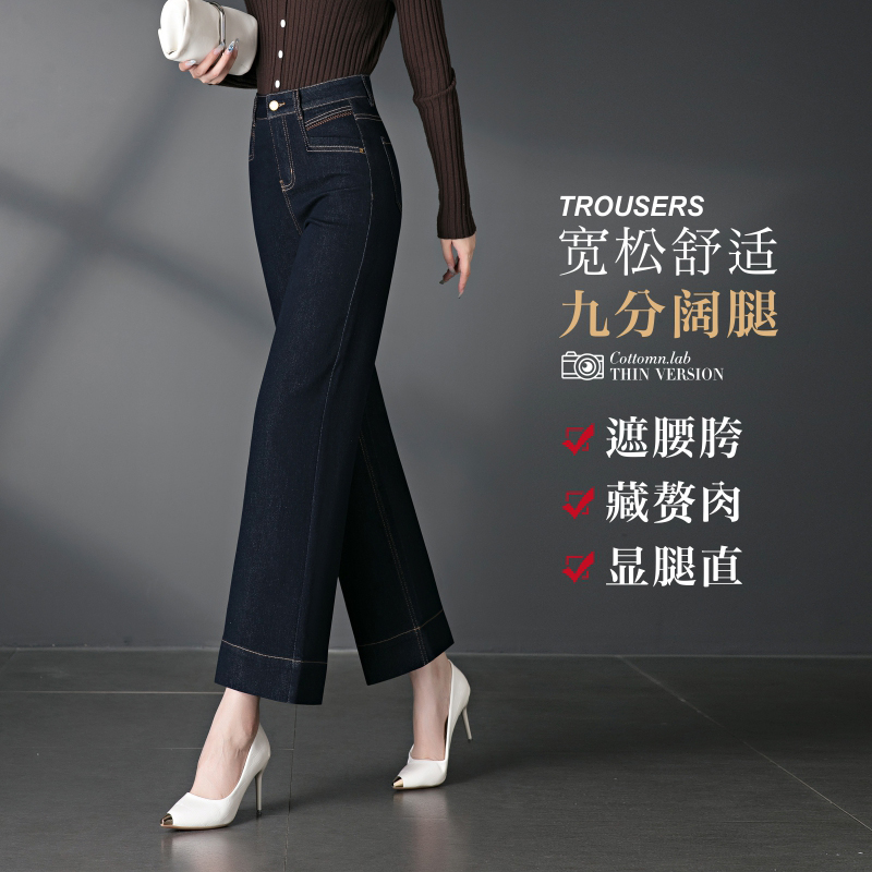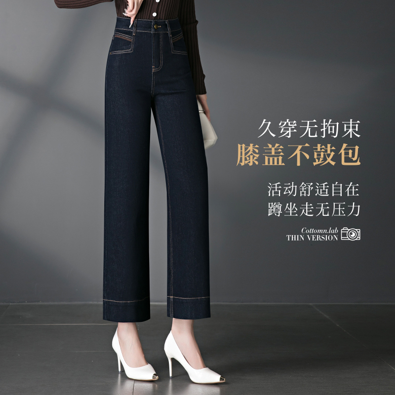 宽松直筒牛仔九分裤女士秋季新款小个子高腰显瘦大码窄版阔腿裤子