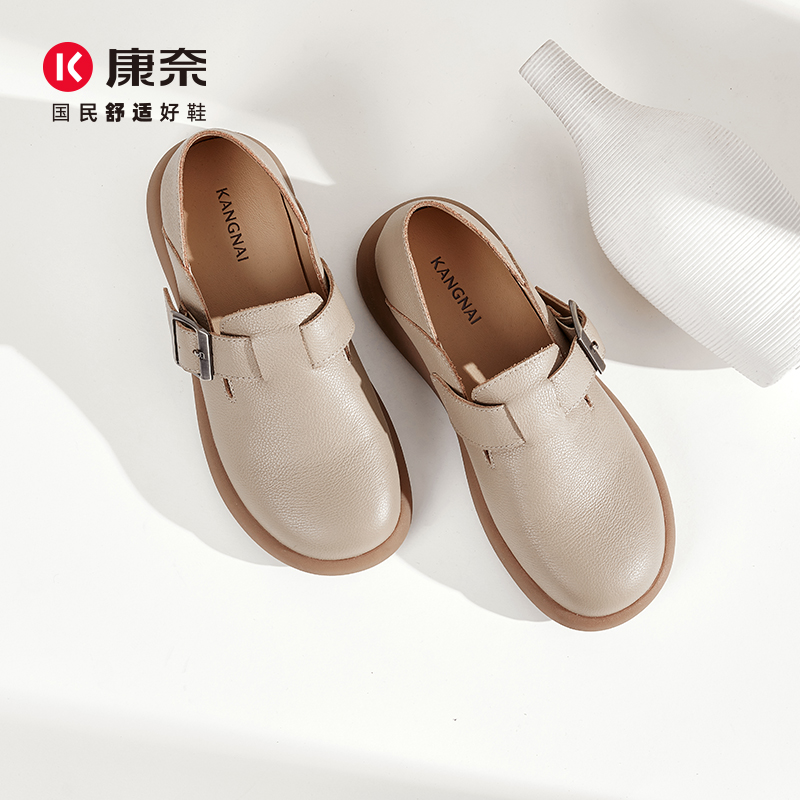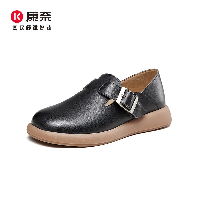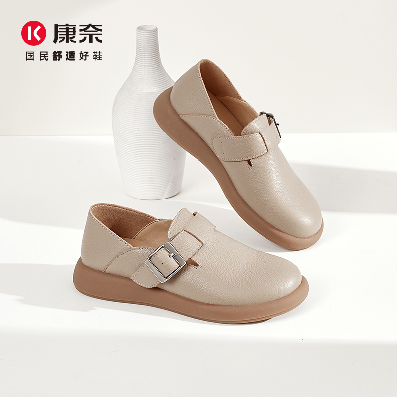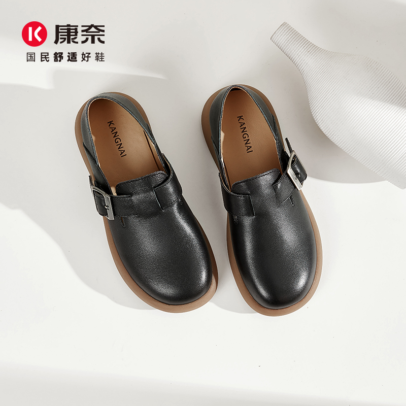 康奈复古勃肯鞋2025秋季新款深口女鞋软底皮鞋真皮方扣平底休闲鞋