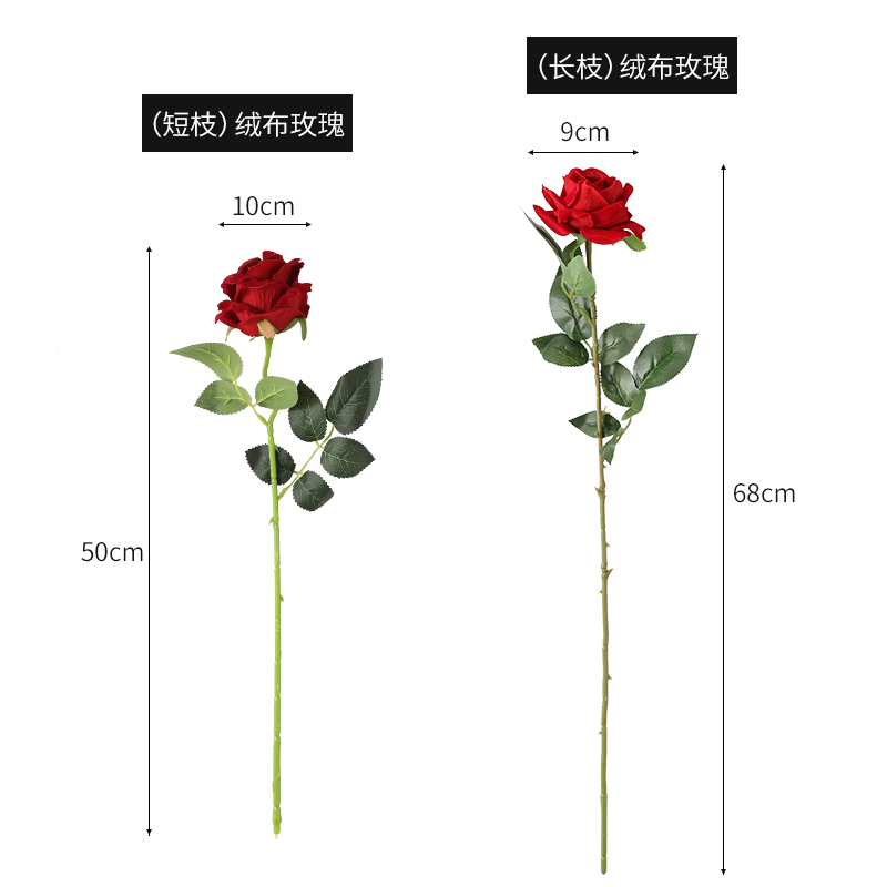绒布玫瑰花仿真花高档假花10单支长枝客厅电视柜落地装饰摆件红色