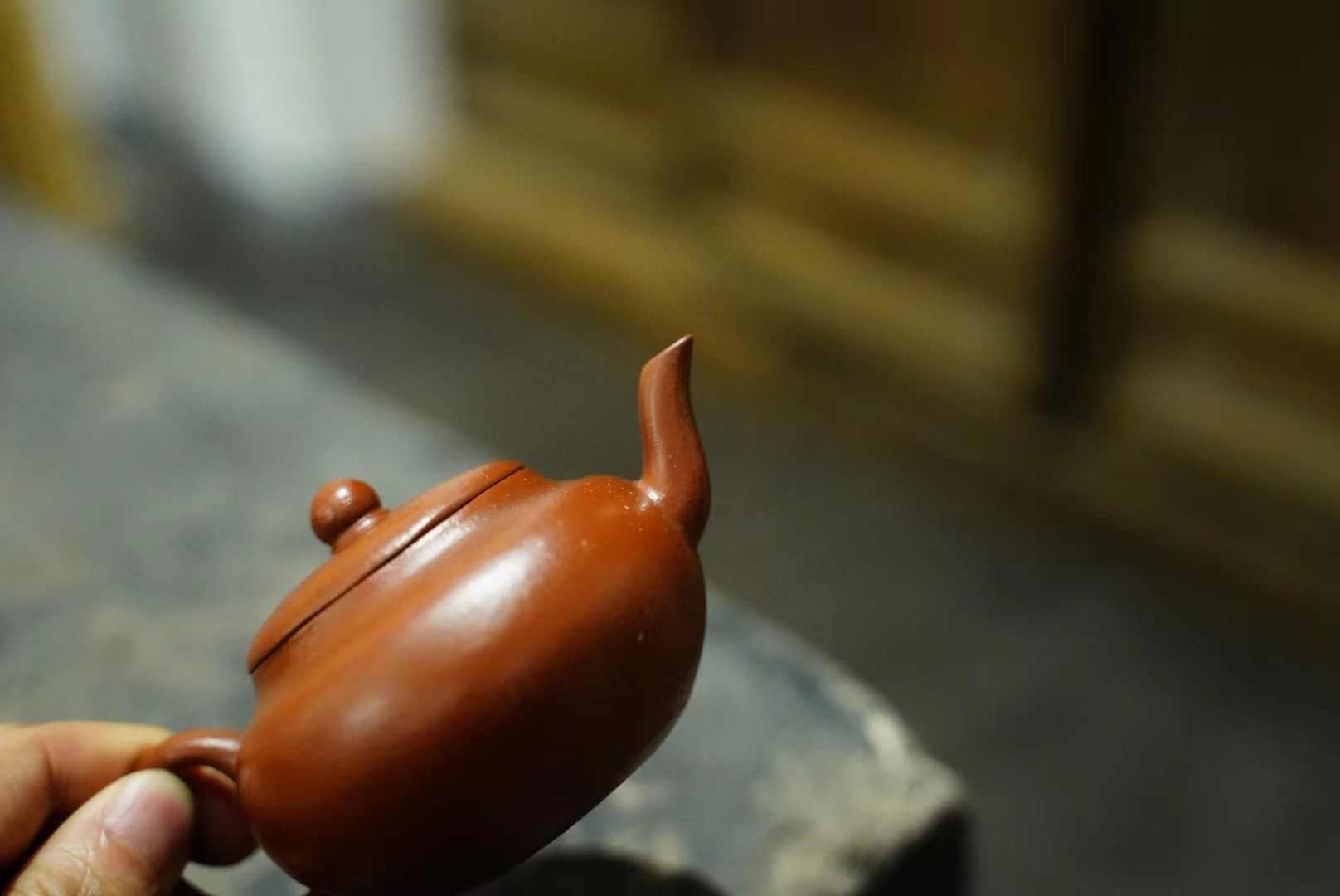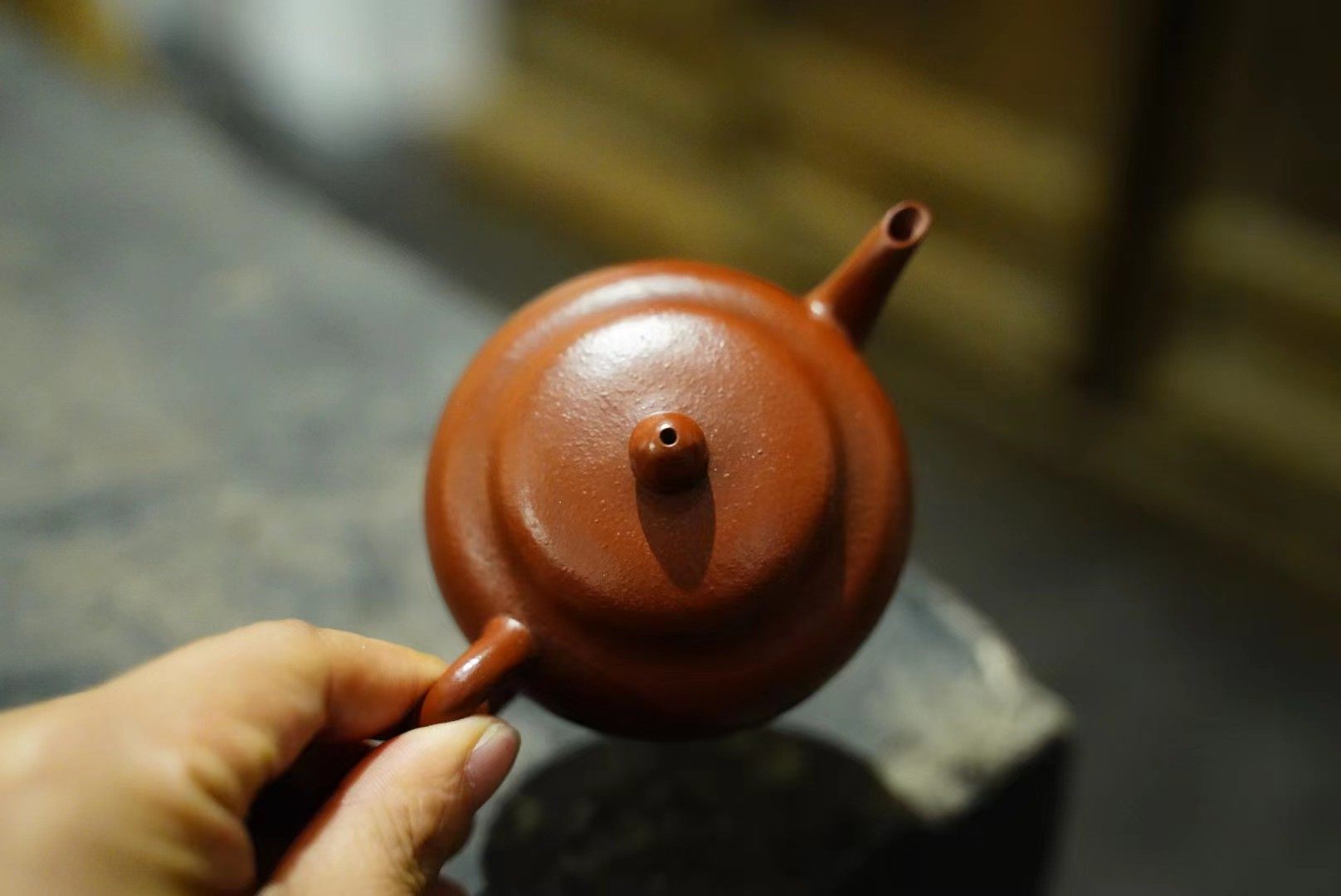 90年代摹清紫砂壶纯手工制柿圆壶原矿粗砂大红袍泥工夫茶小品130c
