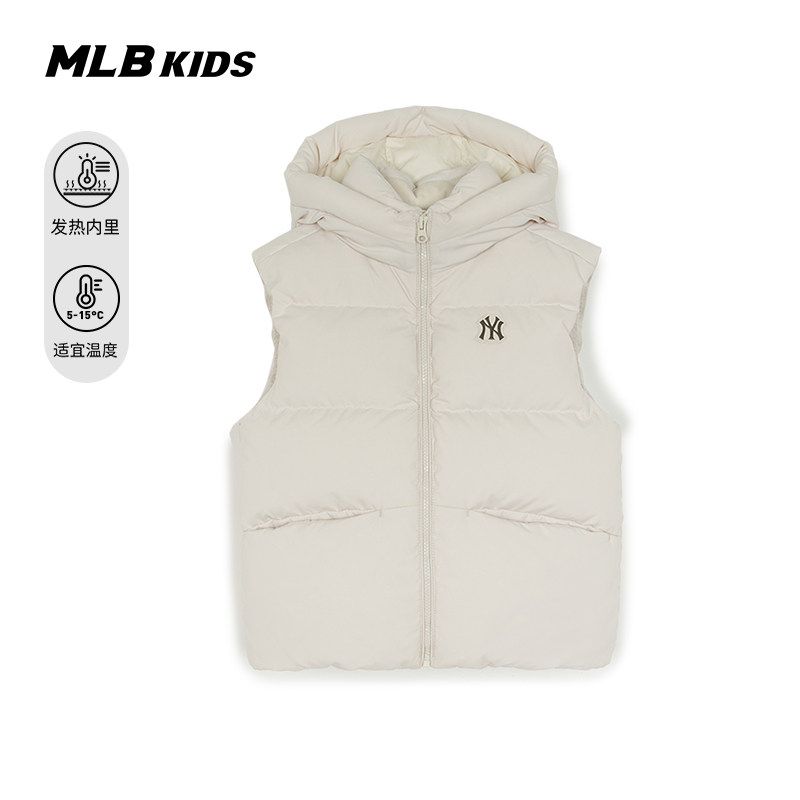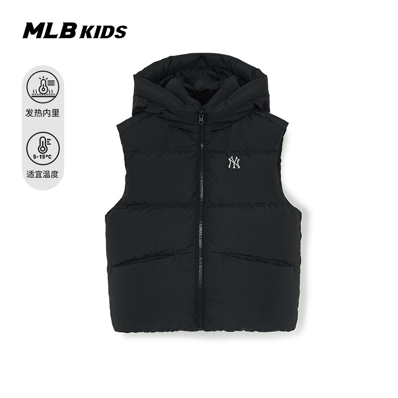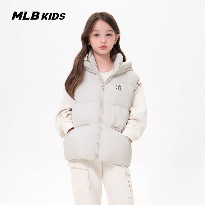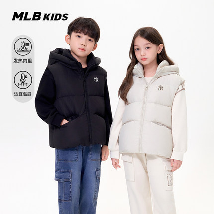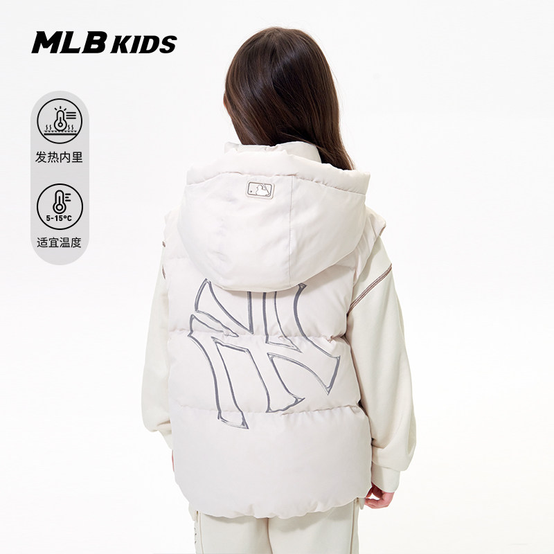 MLB儿童官方男女童时髦后背发热内衬鸭绒连帽羽绒马甲25秋冬新款