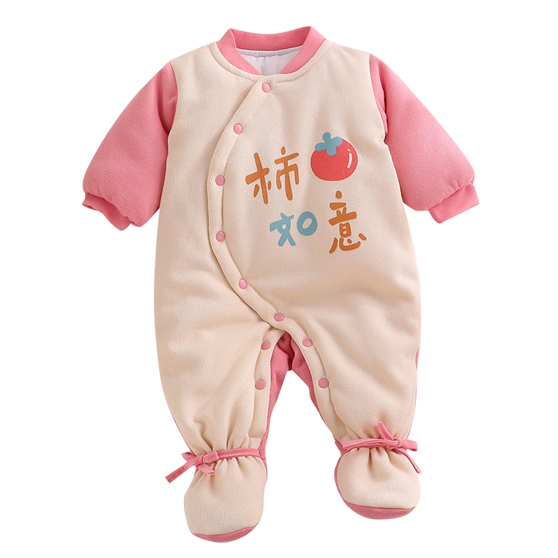 婴儿连体衣服秋冬款a类纯棉小月龄宝宝超厚棉服2025新款包脚冬装