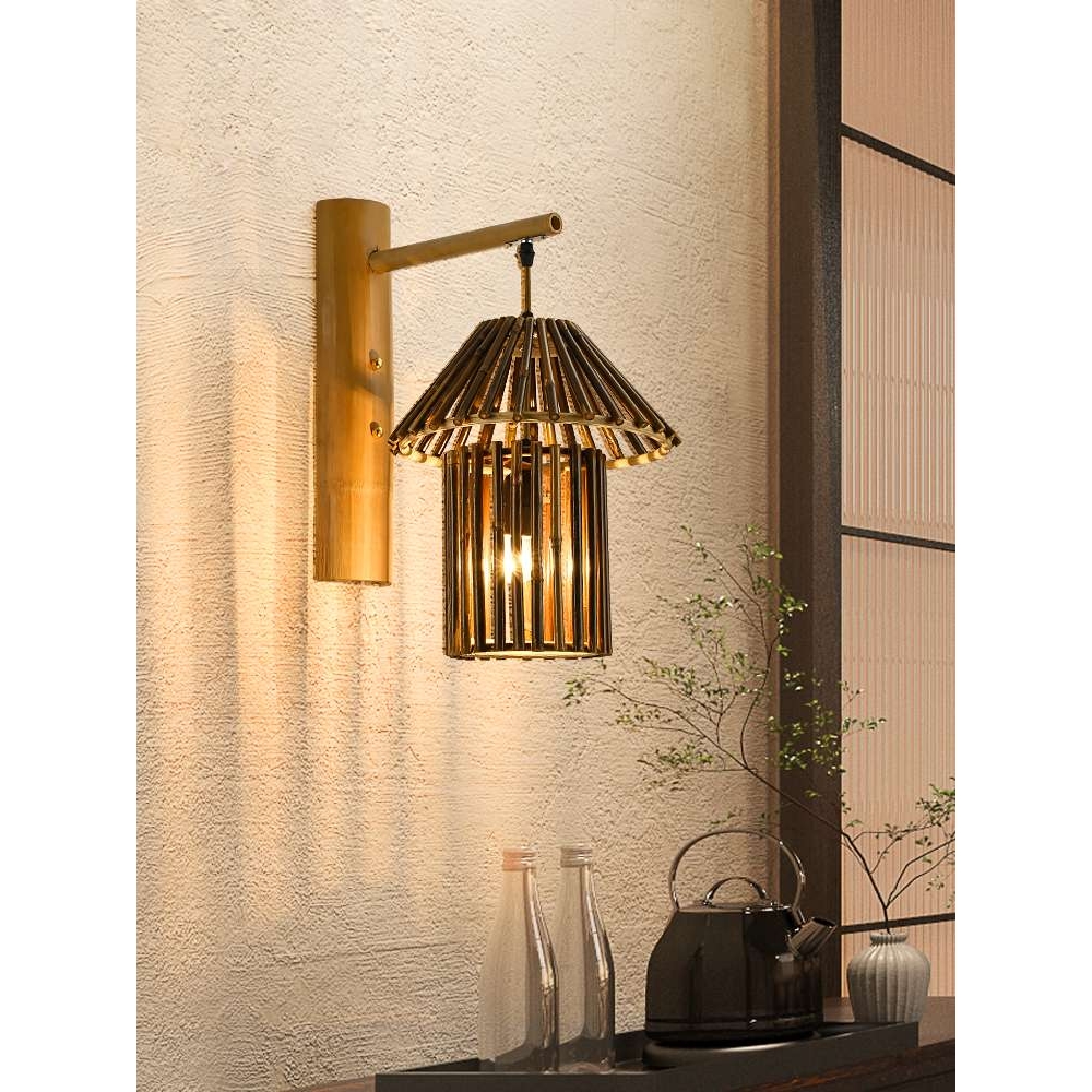 ?竹编竹艺壁灯新中式民宿餐厅酒店楼梯阳台墙灯复古走廊过道免