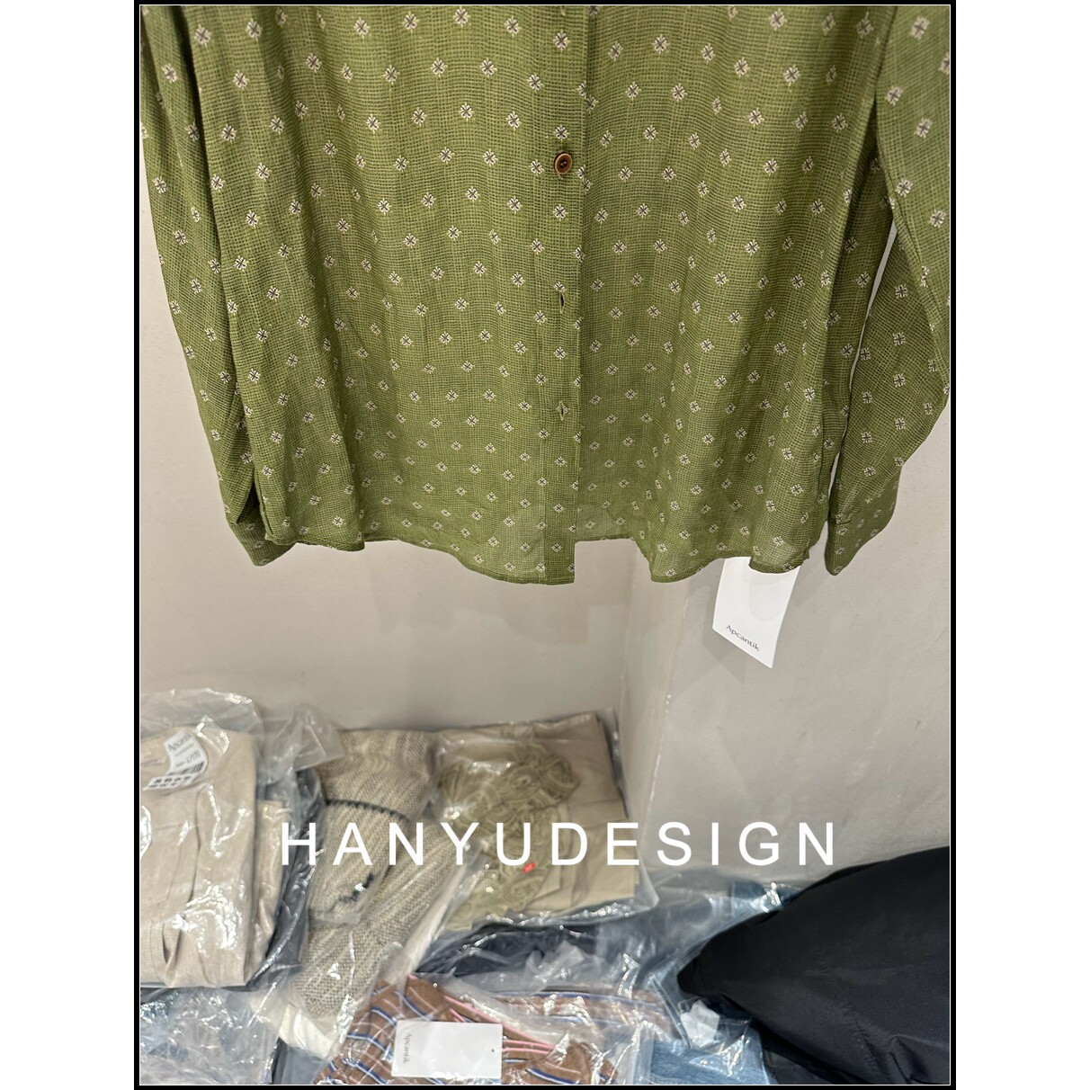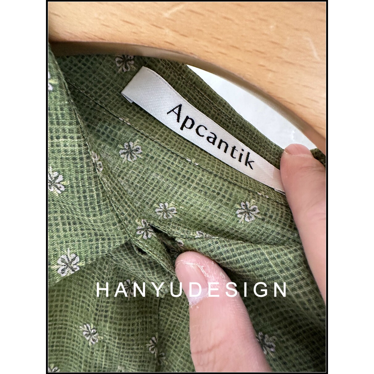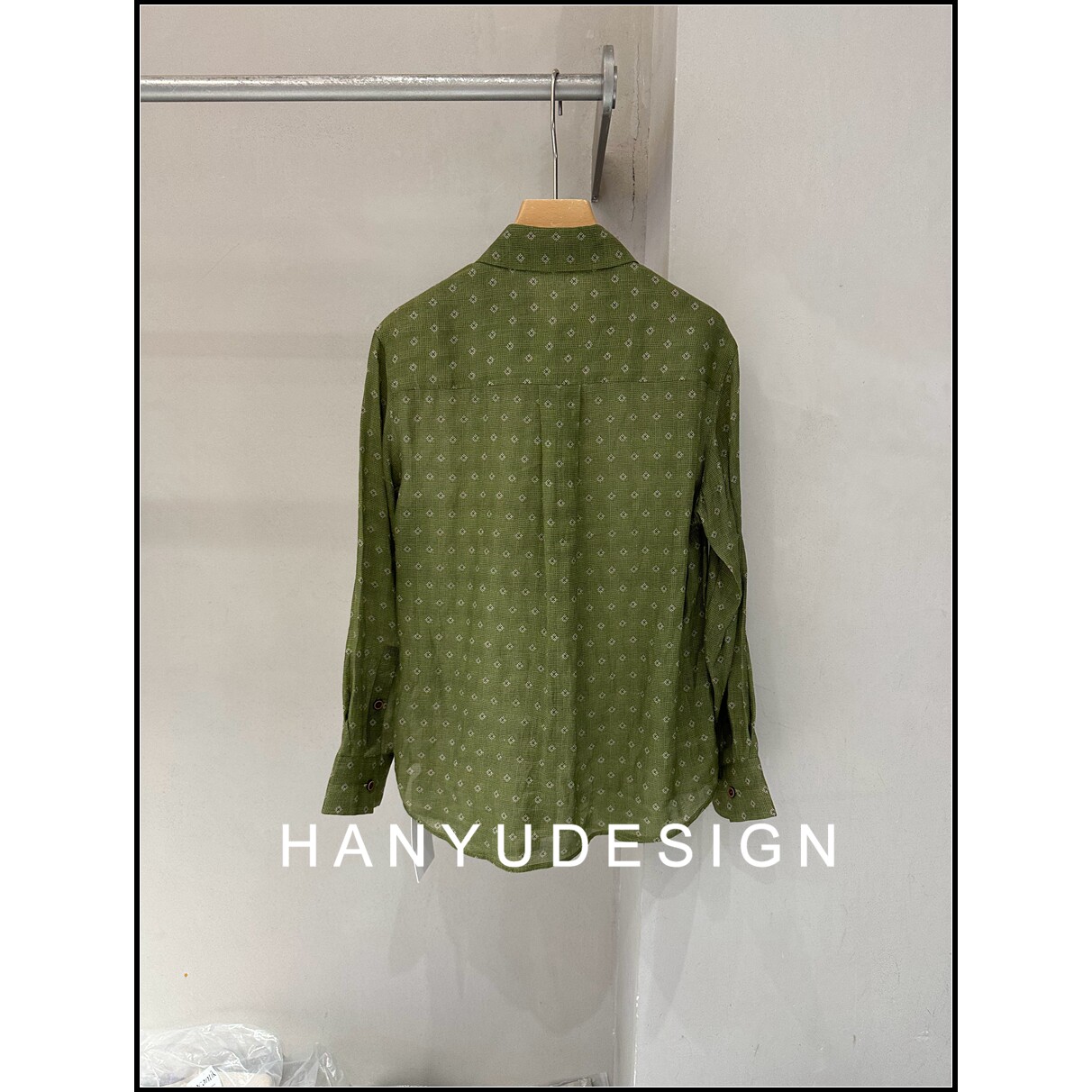 【韩钰DESIGN】26早春新款 100%苎麻复古绿色印花长袖衬衫女