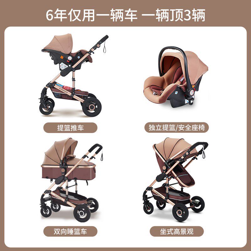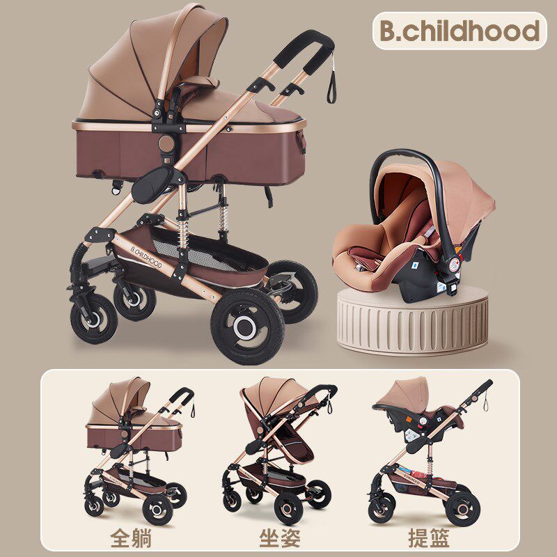 蓝色童年婴儿推车可坐可躺婴儿提篮推车三合一多功能高景观婴儿车