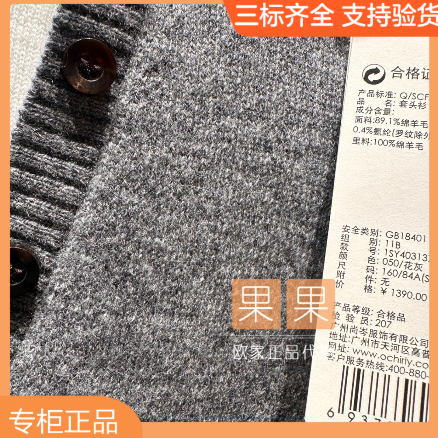 欧时力专柜正品1SY403137F 2025冬纯色长袖拼接针织百搭羊毛衫