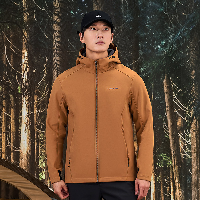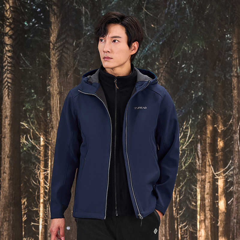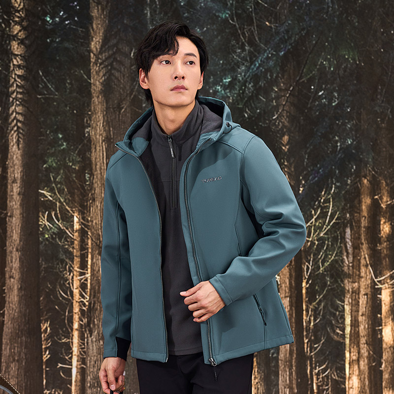 探路者软壳衣男款秋冬季户外防风防泼水弹力加绒保暖登山徒步外套
